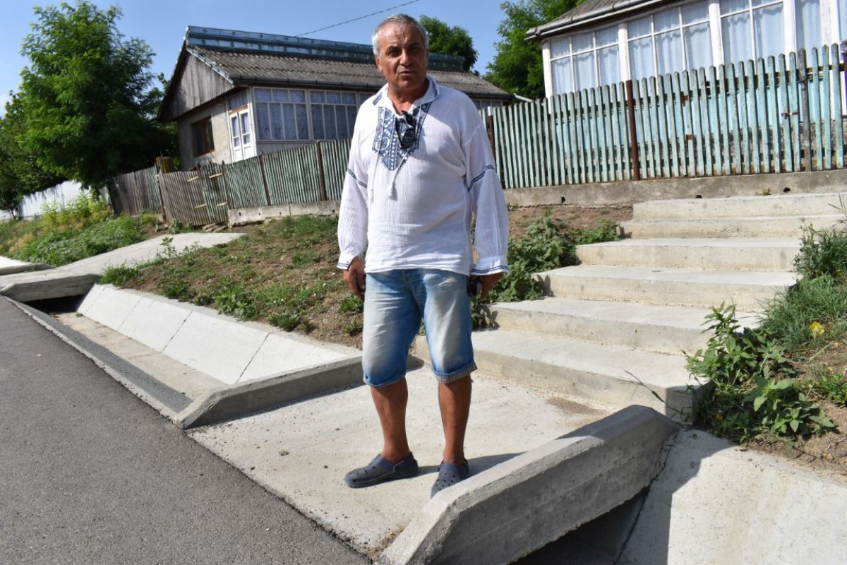 „Acesta nu este un șanț colector, pentru că este celălalt, care preia apele pluviale de sus. Acesta s-a făcut inutil aici, în bătaie de joc. Sunt persoane cu dizabilități, dacă e alunecos caroabilul, încearcă să se deplaseze. S-a dus acolo, acolo rămâne. De ce e bătaia asta de joc? Trebuia să-l lase așa cum a fost”,