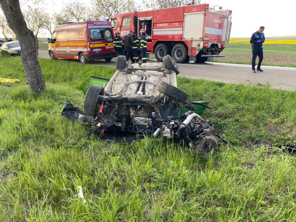 Aceștia au găsit autoturismul răsturnat pe cupolă, iar în interior, pe bancheta din spate, era o femeie. Soțul și fiul acesteia, aflați în mașină în momentul producerii accidentului, au ieșit singuri din autoturism.