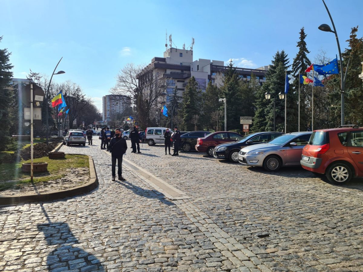 Foarte multe echipaje de jandarmi și poliție au venit în Piața Revoluției, încă de la ora 17.00. Perimetrul pentru protest este foarte mare, semn că autoritățile s-au pregătit pentru o prezență numeroasă la Botoșani.