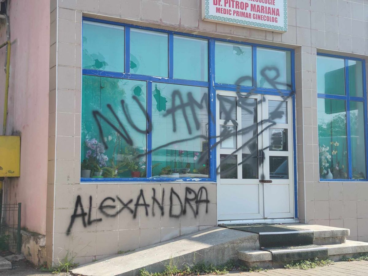 „Polițiștii care s-au deplasat la fața locului au stabilit că cele sesizate se confirmă, iar o parte dintre geamurile imobilului respectiv erau distruse. Totodată, peretele imobilului era scris cu o substanță neagră”,
