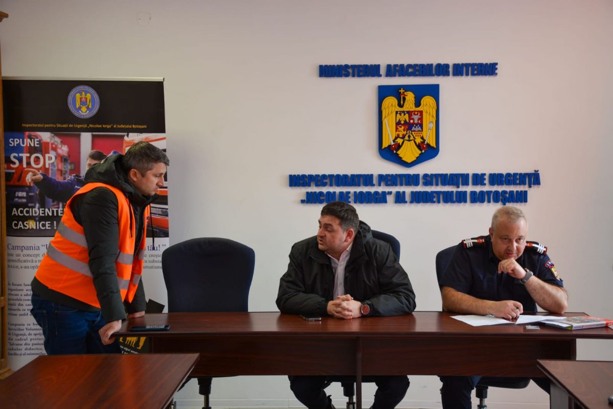 Având în vedere situația operativă existentă la nivelul județului Botoșani, începând cu ora 13.00, în urma ședinței extraordinare a Comitetului Județean pentru Situații de Urgență, prefectul județului, Sorin Cornilă, a decis activarea Centrului Județean de Coordonare și Conducere a Intervenției la sediul ISU Botoșani, din care fac parte câte un reprezentant al Inspectoratului de Poliție Județean Botoșani, Inspectoratului Județean de Jandarmi Botoșani, Secției Drumuri Naționale, Direcției de Drumuri Județene și Poduri și Sectorul Teritorial al Poliției de Frontieră Botoșani.