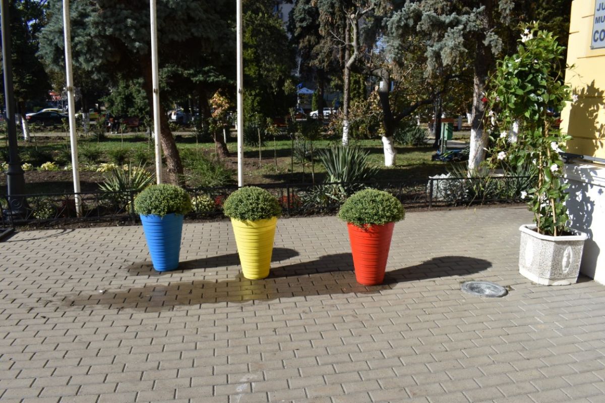 Flori de toamnă la Primărie, în nuanță patriotică