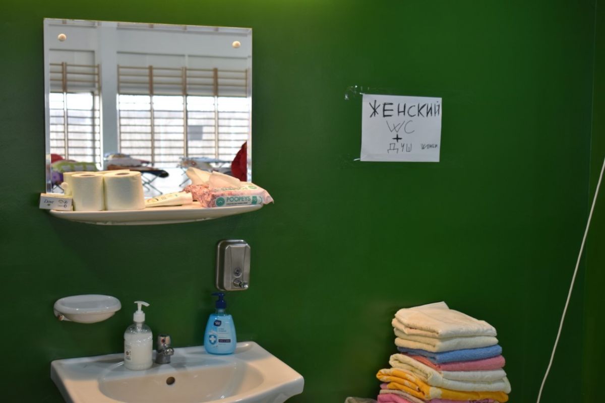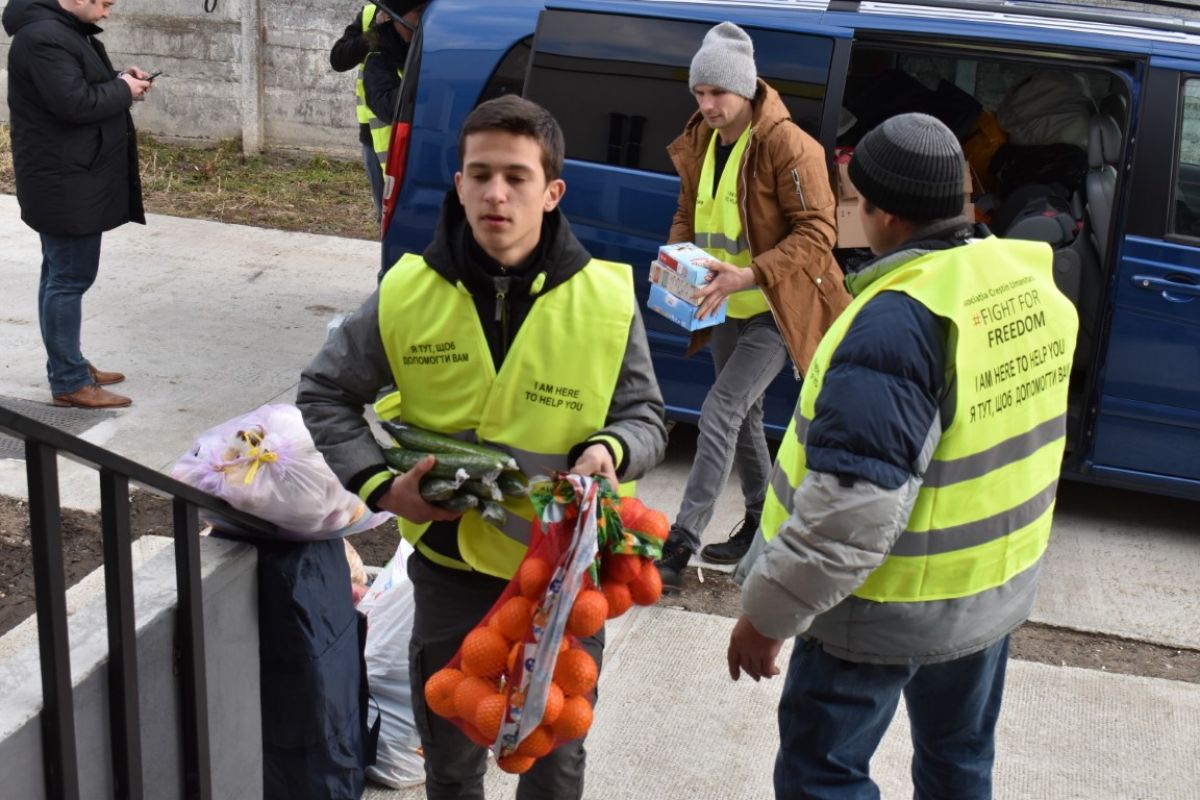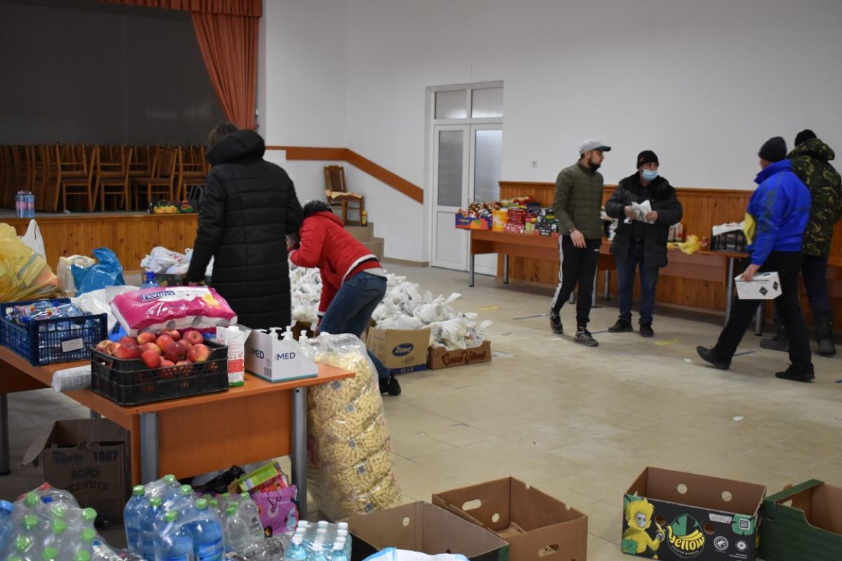 120 de locuri sunt disponibile în centru pentru ucraineni. Peste tot sunt alimente, produse de igienă, apă, fructe, haine și încălțăminte donate de civili.