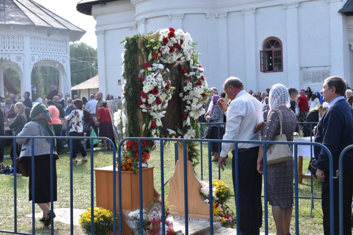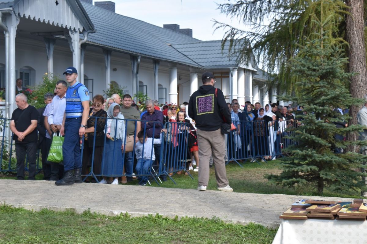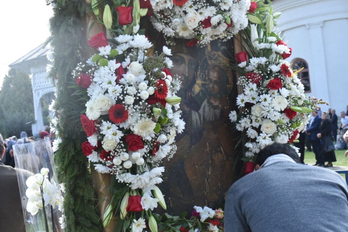 Curtea era tăiată de o coadă impresionantă de oameni care așteptau să treacă pe sub Icoana Făcătoare de Minuni. Unii au așteptat mai bine de o oră pentru a ajunge în zona în care se afla Icoana pentru a adresa rugi Divinității.