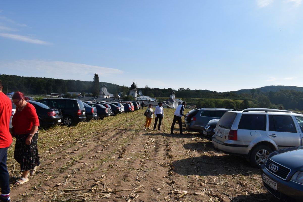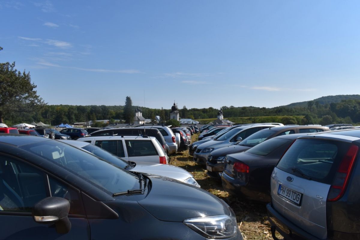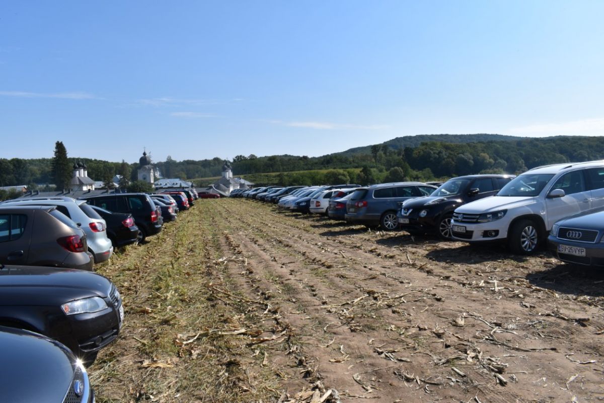 Zona din jurul lăcașului sfânt a devenit neîncăpătoare de la primele ore ale dimineții. Suprafețe de teren de pe care a fost recoltat porumb au fost transformate în parcări pentru sutele de autoturisme care s-au aliniat în șiruri lungi. Polițiștii și jandarmii dirijau mașinile pentru a fi evitate blocajele și astfel ziua de sărbătoare nu a fost umbrită de eventualii nervi ai șoferilor.