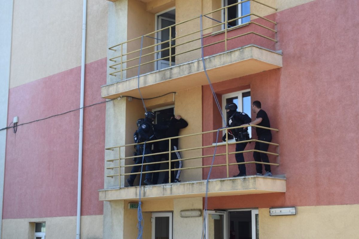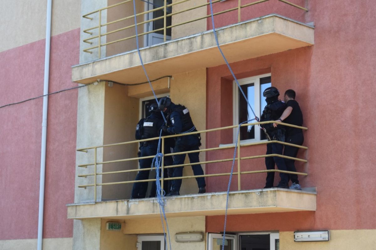 Celălalt infractor a reușit să scape și s-a baricadat într-o clădire unde a luat un ostatic. Grupele antiteroriste au acționat cu ajutorul frânghiilor, lansându-se în balconul țintă de la un etaj superior.