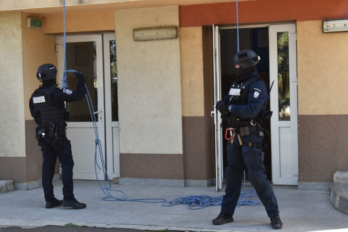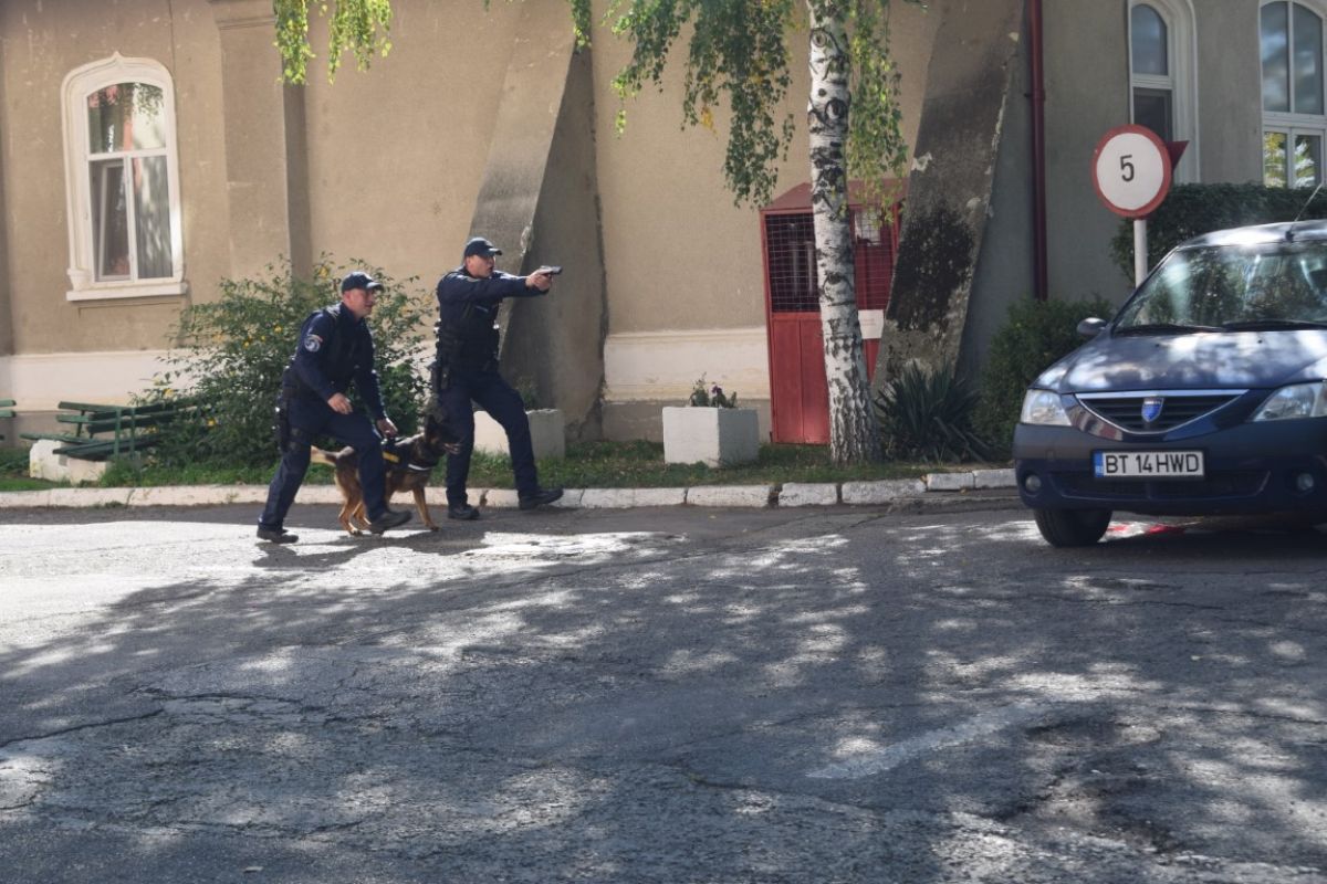Echipajele Grupei de Acțiuni Speciale și Intervenție Antiteroristă dar și Grupei Conductori Câini de Serviciu ajutate de doi elevi de la Școala Fălticeni care se află în practică la IJJ Botoșani au participat la demonstrație.