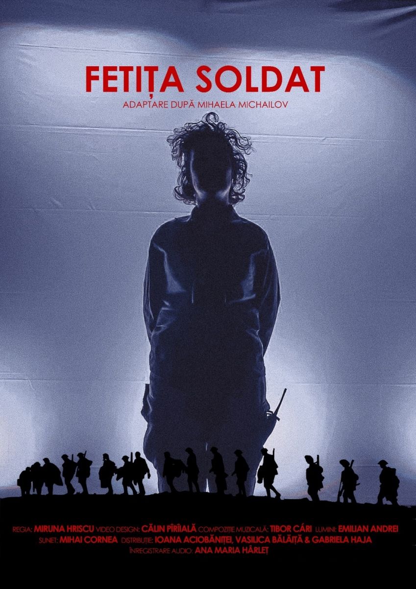 Regia artistică, decor şi costume sunt semnate de Miruna Hriscu, compoziţia muzicală îi aparţine lui Tibor Cári, video desing: Călin Pîrîială, iar protagoniştii spectacolului sunt: Ioana Aciobăniței (Fetiţa soldat) şi Vasilica Bălăiță (Soldata)