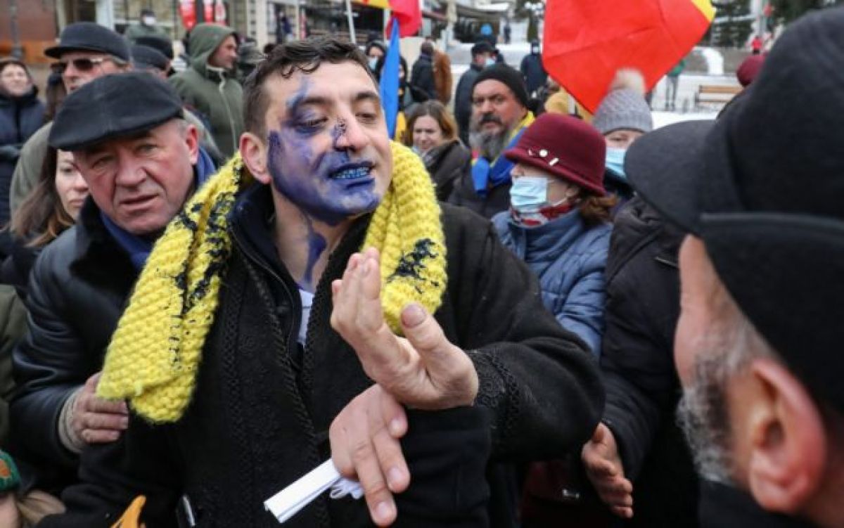 În timpul evenimentului, liderul AUR, George Simion, a fost stropit cu cerneală de un individ aflat în mulțime.