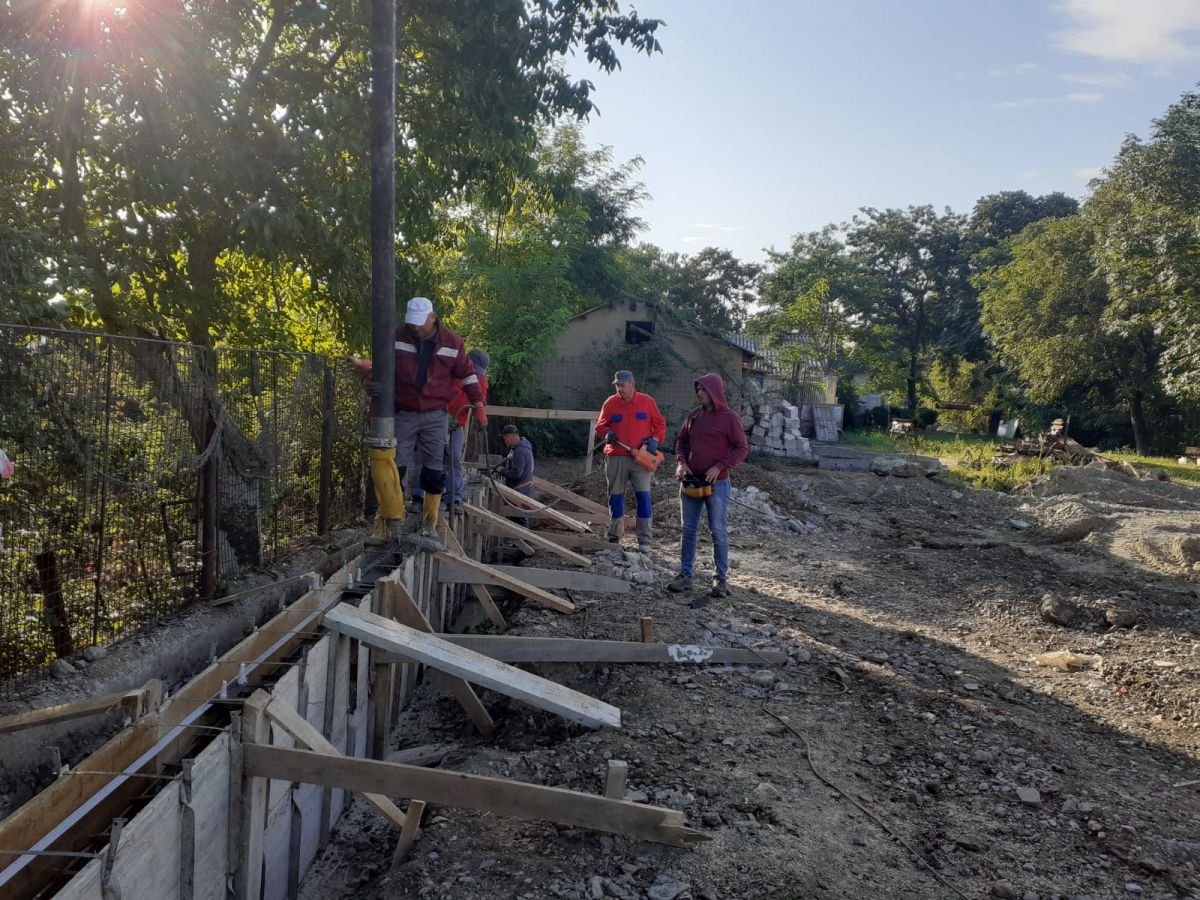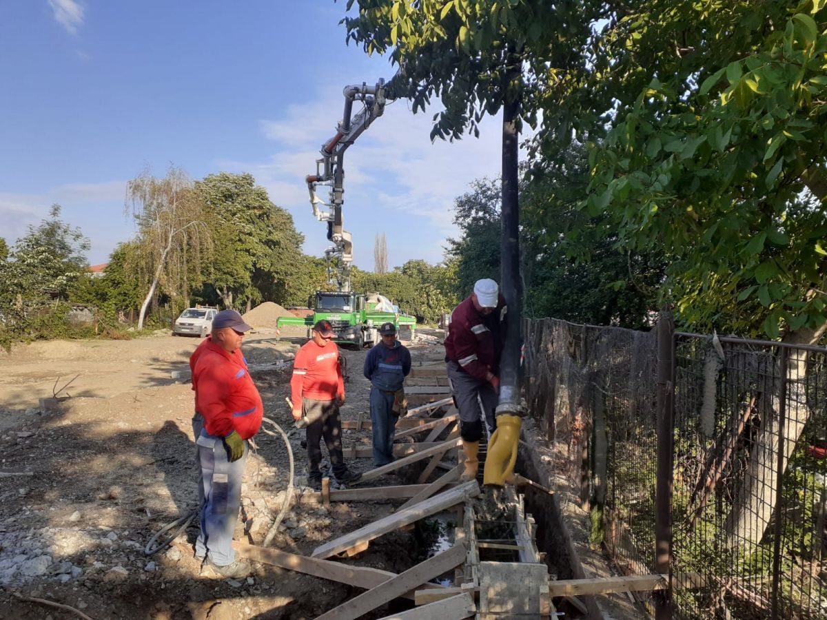Constructorii au finalizat lucrările la zidul pe care vor fi montate panourile sonice și au conturat platforma heliportului.