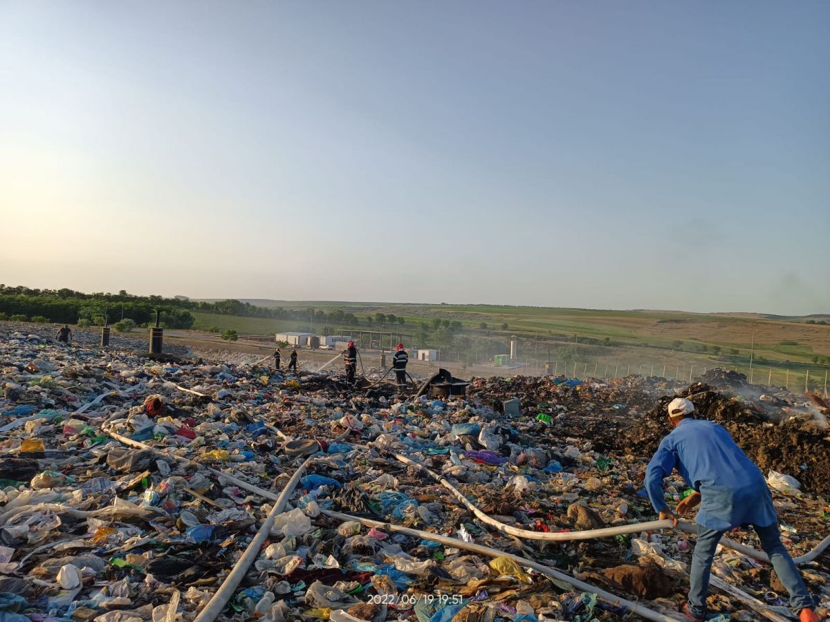 UPDATE, ora 20.43: Incendiul a fost lichidat. Cu ajutorul a trei buldoexcavatore se intervine pentru răscolirea deșeurilor în vederea identificării și eliminării eventualelor focare. La fața locului sunt prezenți și reprezentanți ai Consiliului Județean Botoșani, Agenției de Protecție a Mediului și ai Gărzii de Mediu.