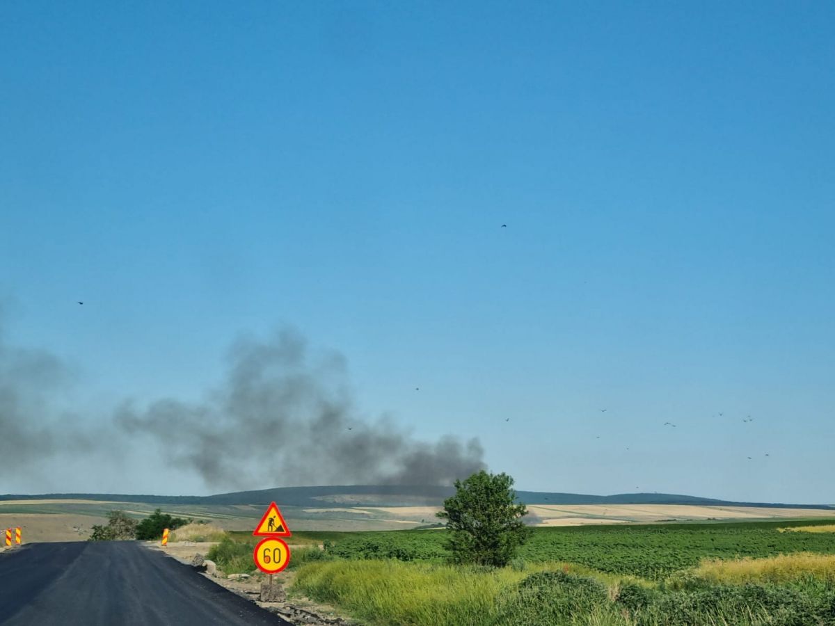 Pompierii botoșăneni acționează pentru stingerea incendiului care a izbucnit în interiorul depozitului ecologic de deșeuri de la Stăuceni.