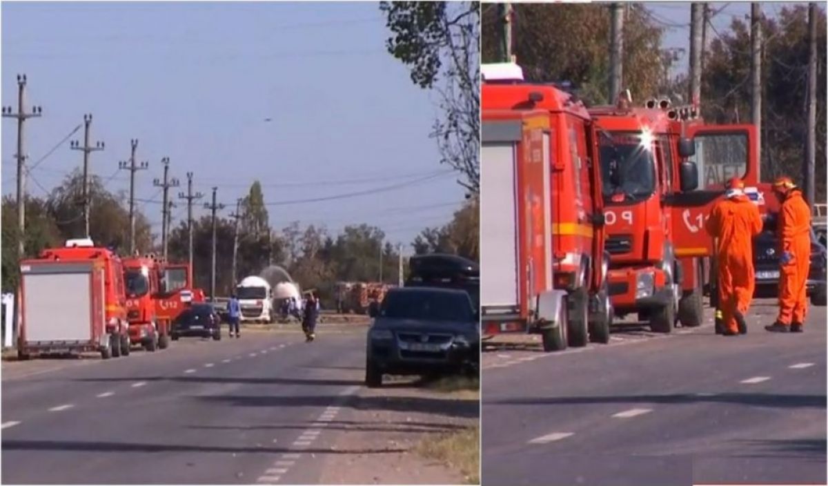 Există încă o cisternă care are în interior combustibil, iar în acest moment salvatorii încă încearcă să elimine pericolul.