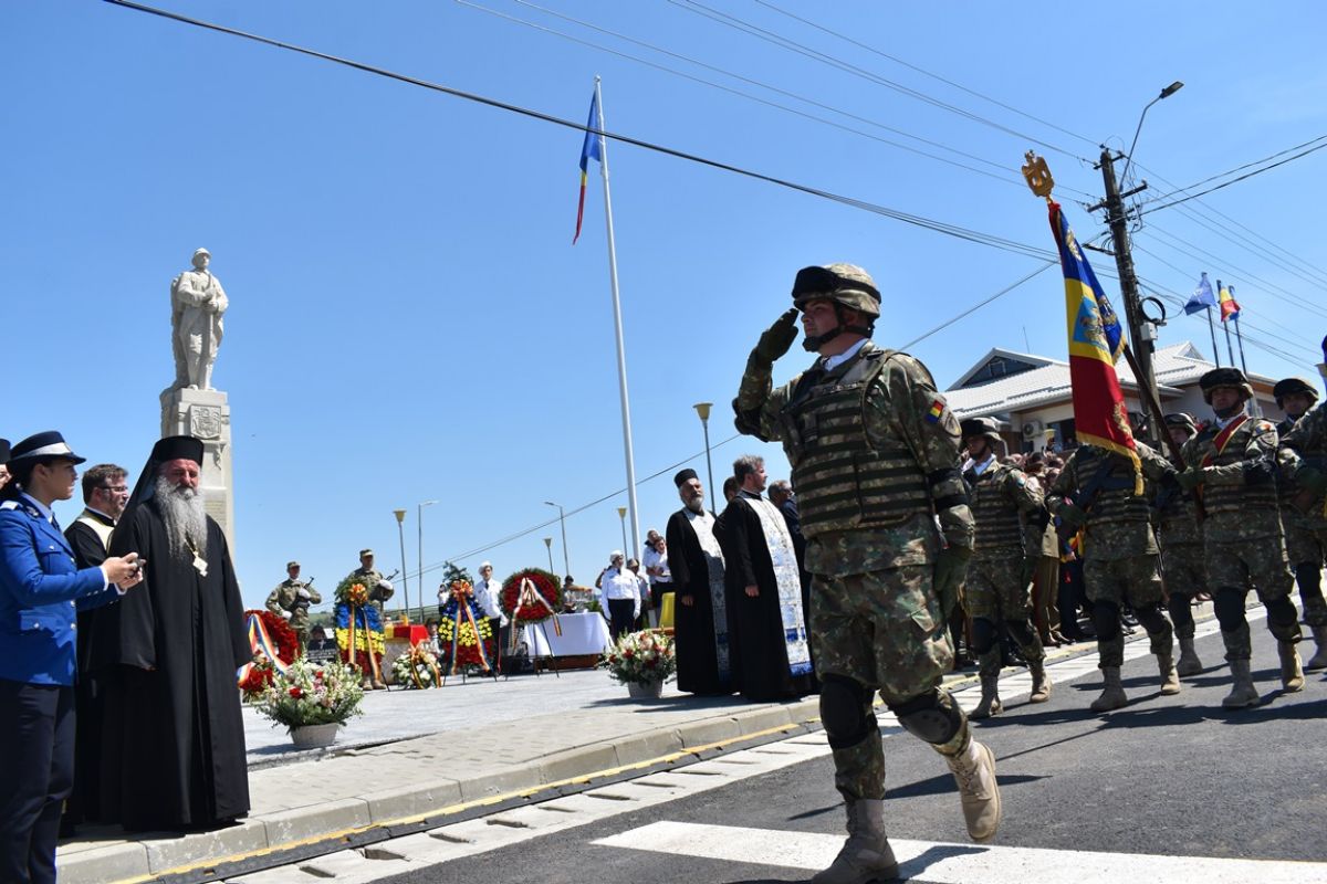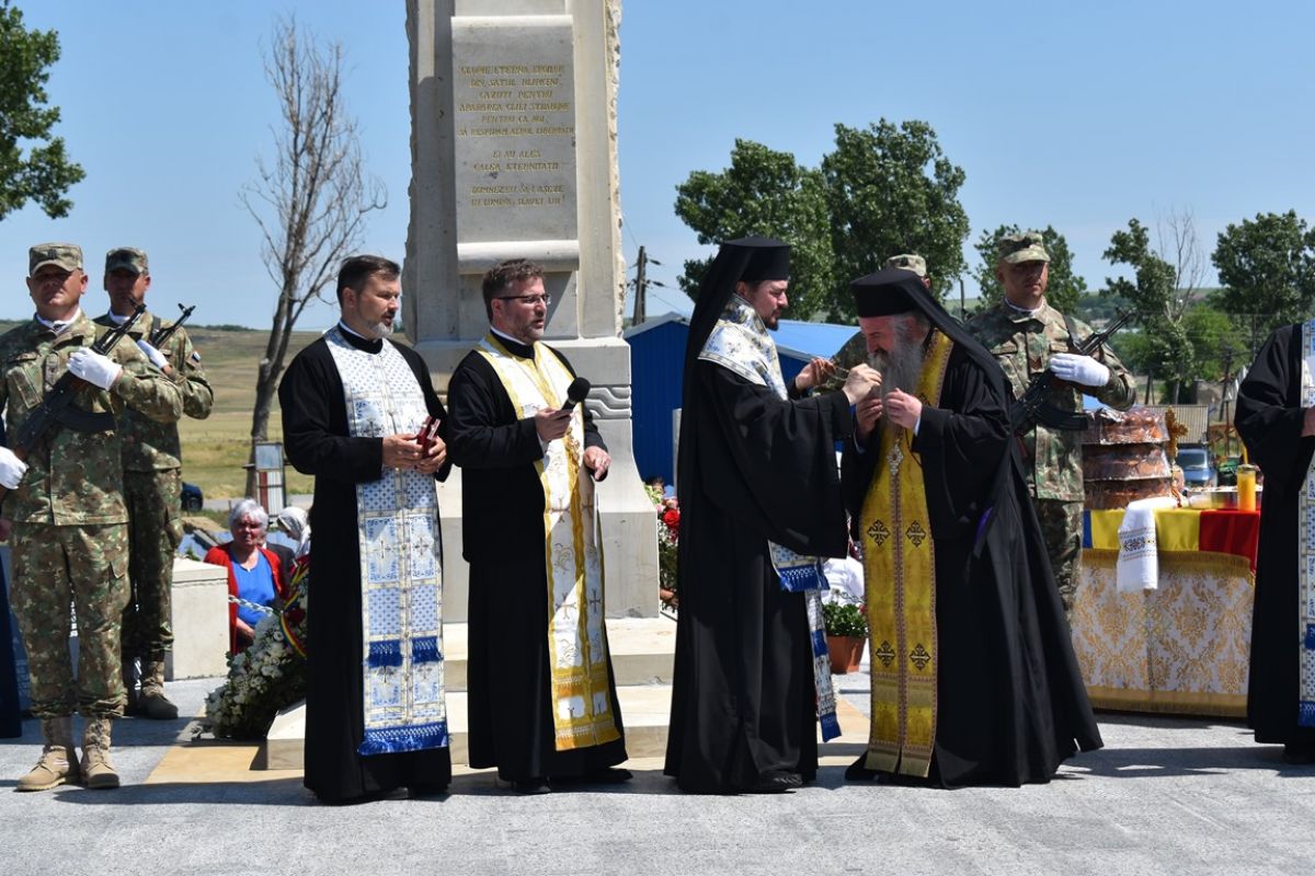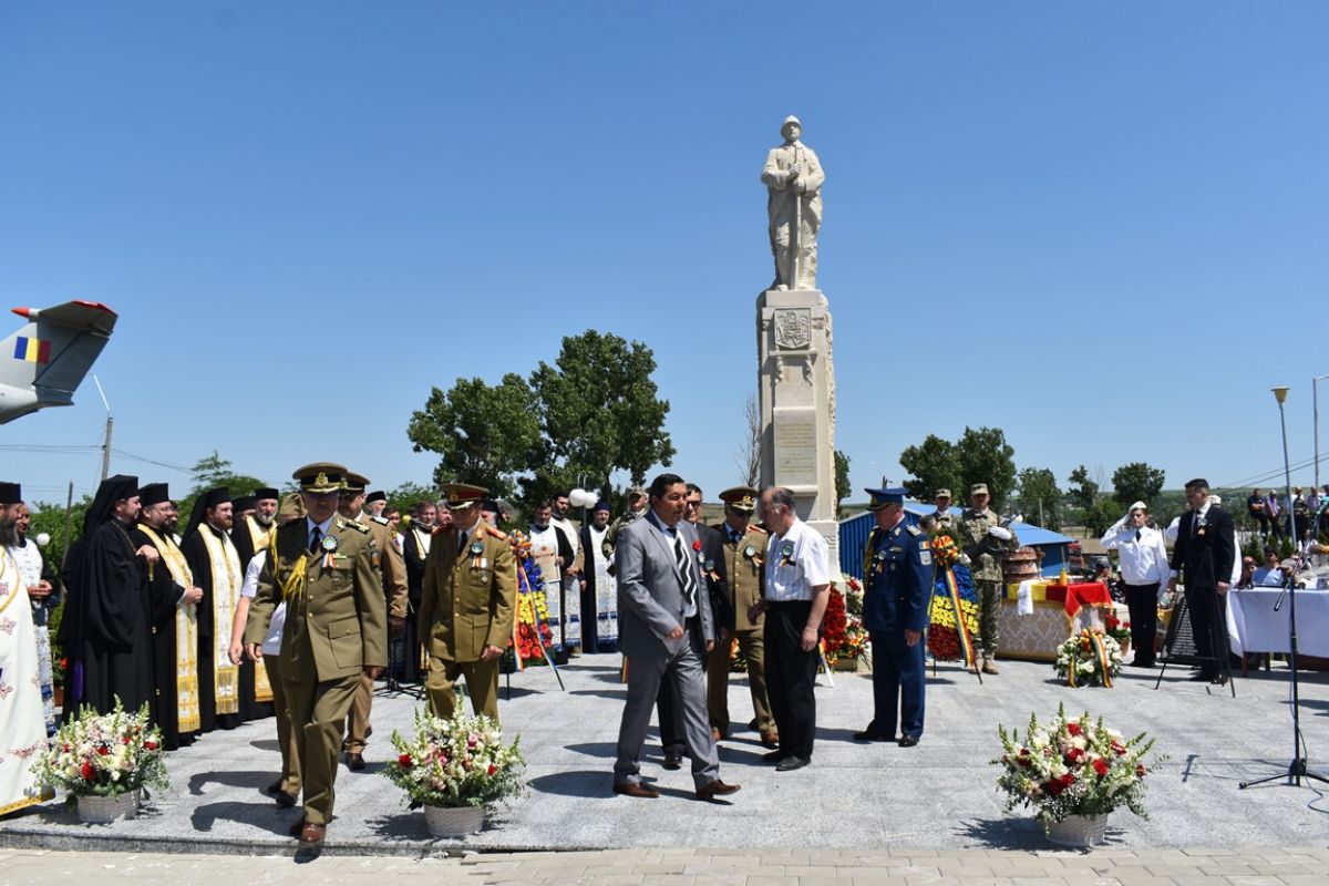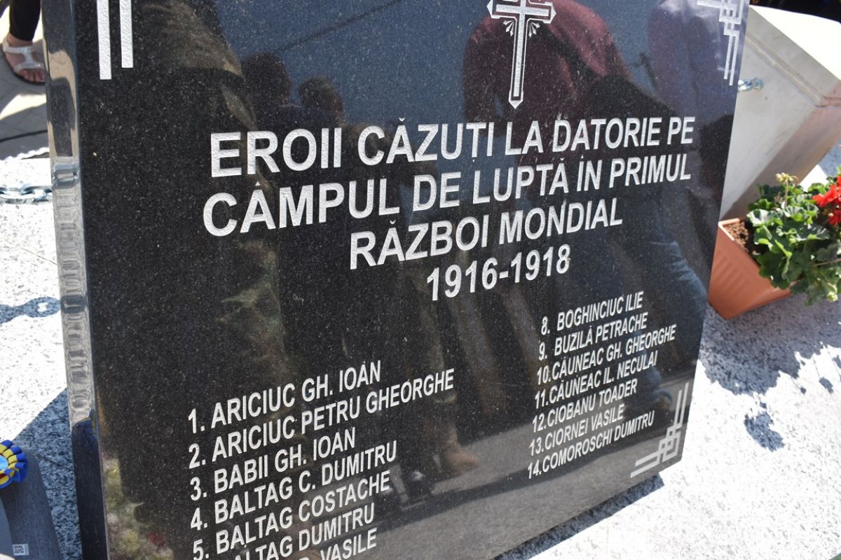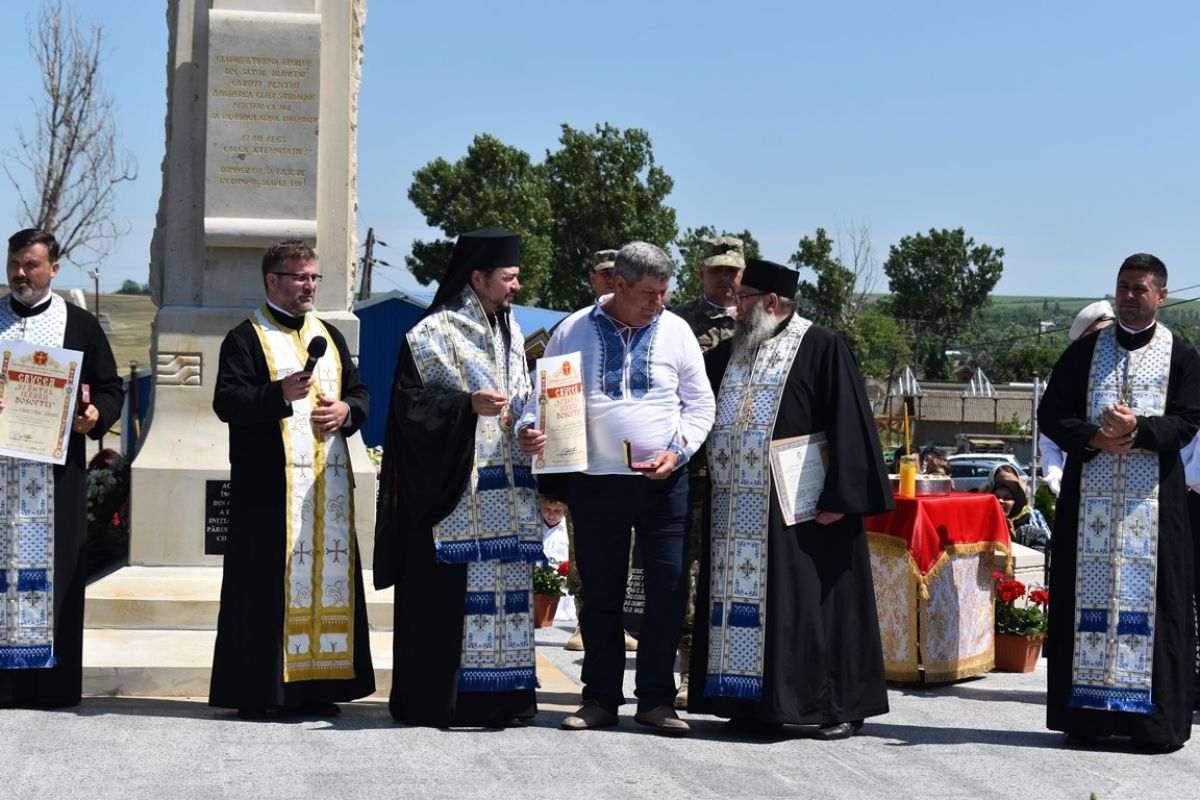 După ce a avut o contribuție decisivă la restaurarea Bisericii Sfântul Nicolae din centrul comunei, peste drum, părintele arhimandrit Ciprian Grădinaru, fiu al satului și cetățean de onoare, a inițiat construcția unui ansamblu care, pe lângă monumentul propriu-zis realizat de sculptorul Ion Lozan din Soroca, Republica Moldova, include un avion Delfin L 29, simbol al Forțelor Aeriene Române și un obuzier cu calibrul de 122 disponibilizat de Armata Română.