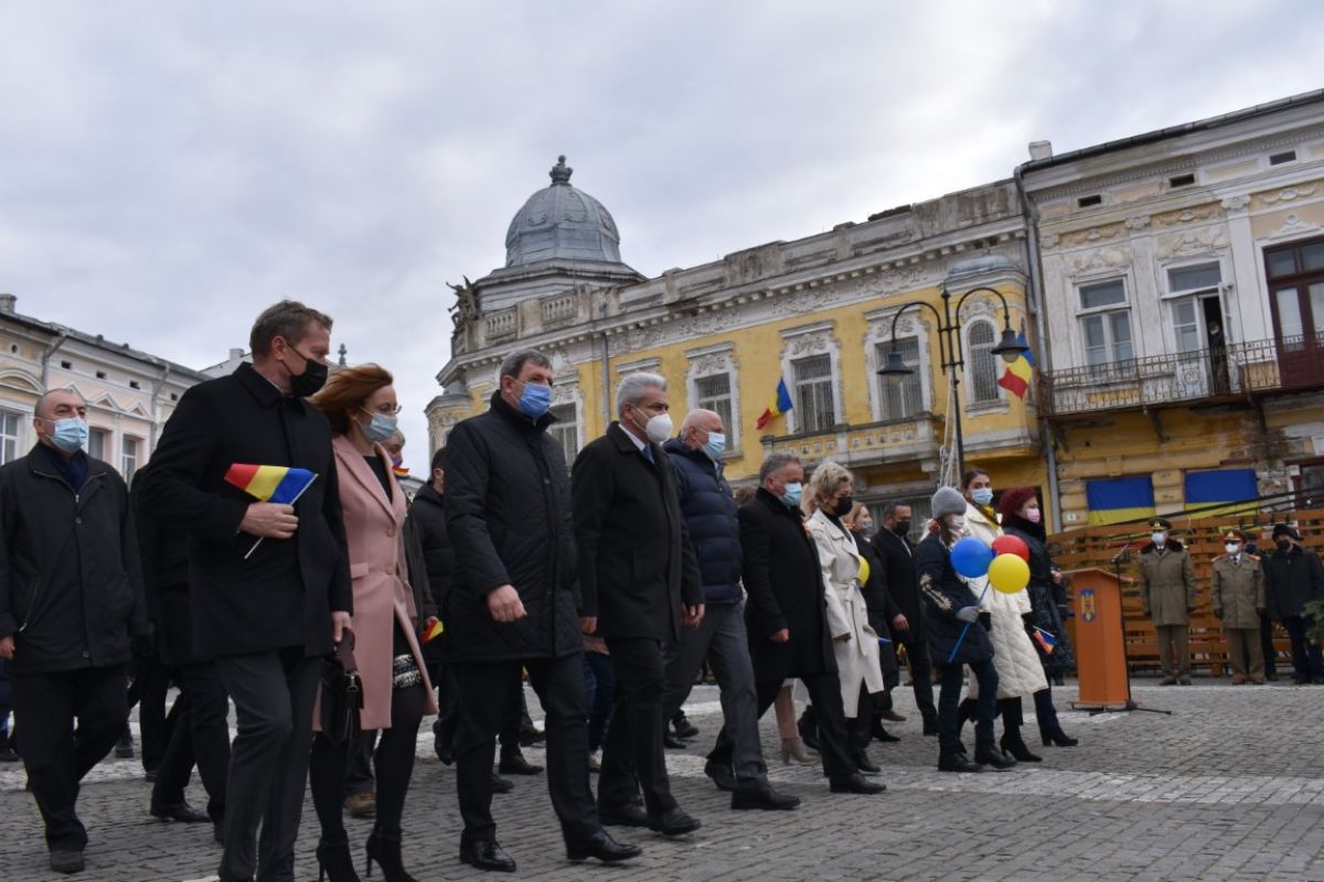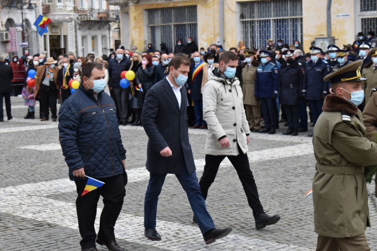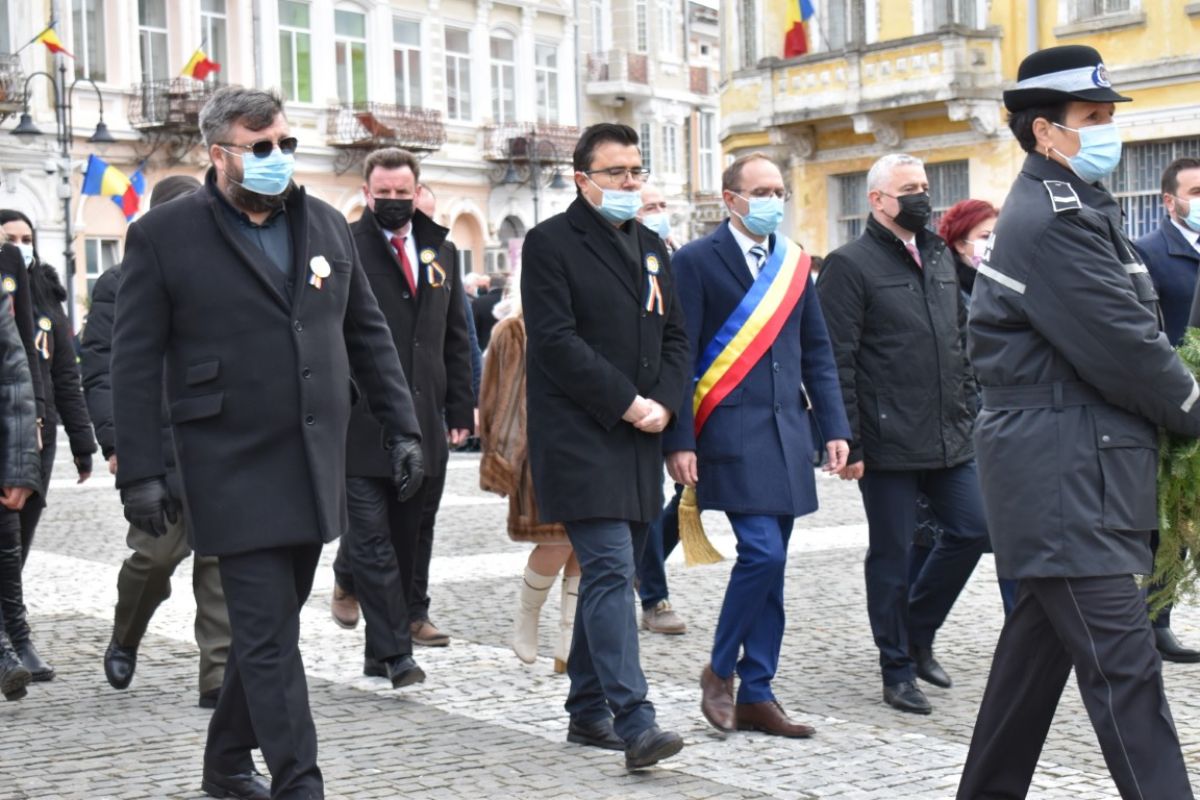 Cu Costel Șoptică în mijloc, flancat de colegul parlamentar Cristian Achiței și colegul prefect, Dan Nechifor, peneliștii au fost vizibili din punct de vedere numeric, fiind înșirați pe mai multe rânduri la depunerea propriei coroane.