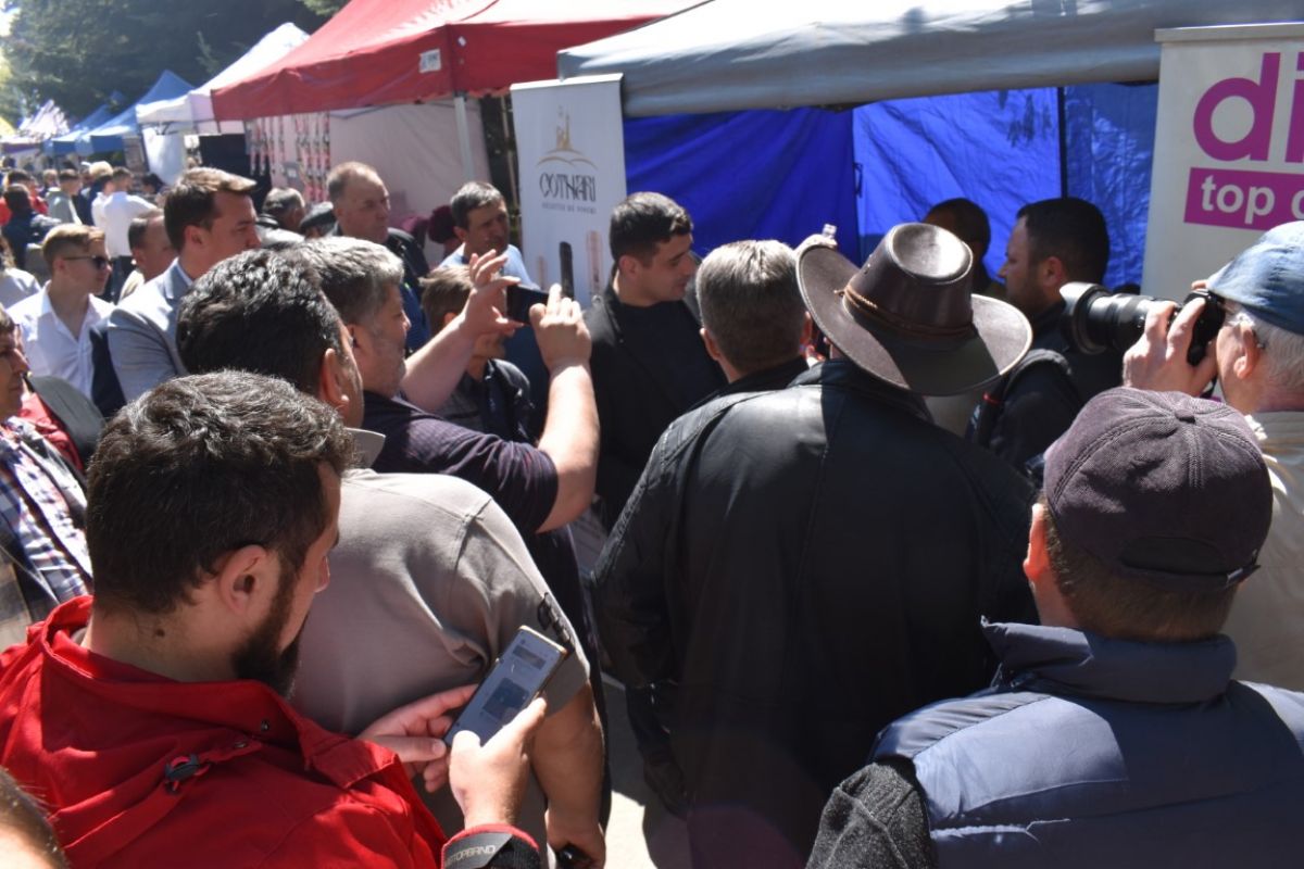 Simion și echipa sa, printre care și cei doi parlamentari AUR de la Botoșani au ajuns la Popăuți cu mult înainte de ora anunțată pentru sosirea oficialităților. Și a urmat același traseu, identic cu a celorlalți politicieni de la PSD sau PNL. A vizitat standurile producătorilor, a făcut glumițe cu ei și le-a lăudat „marfa”.