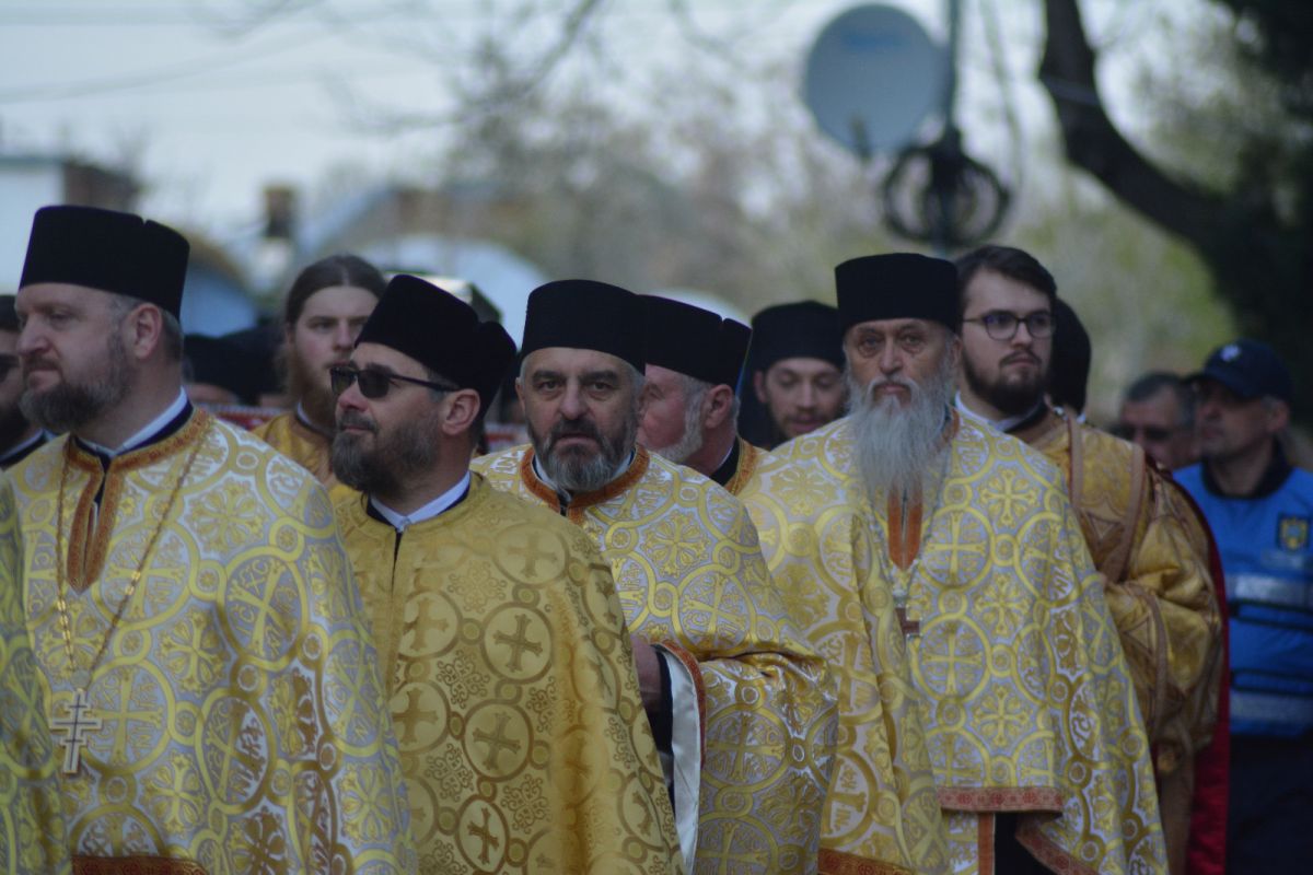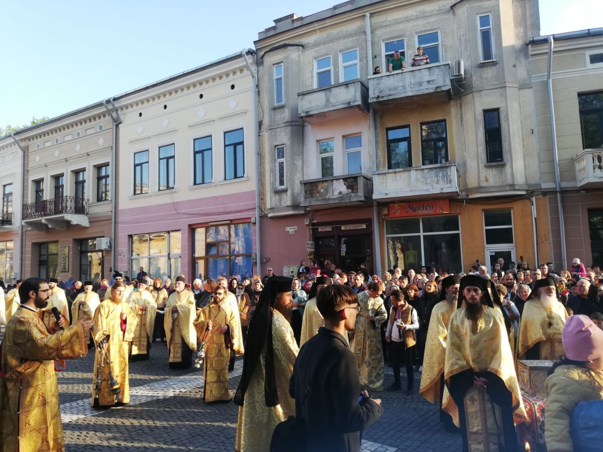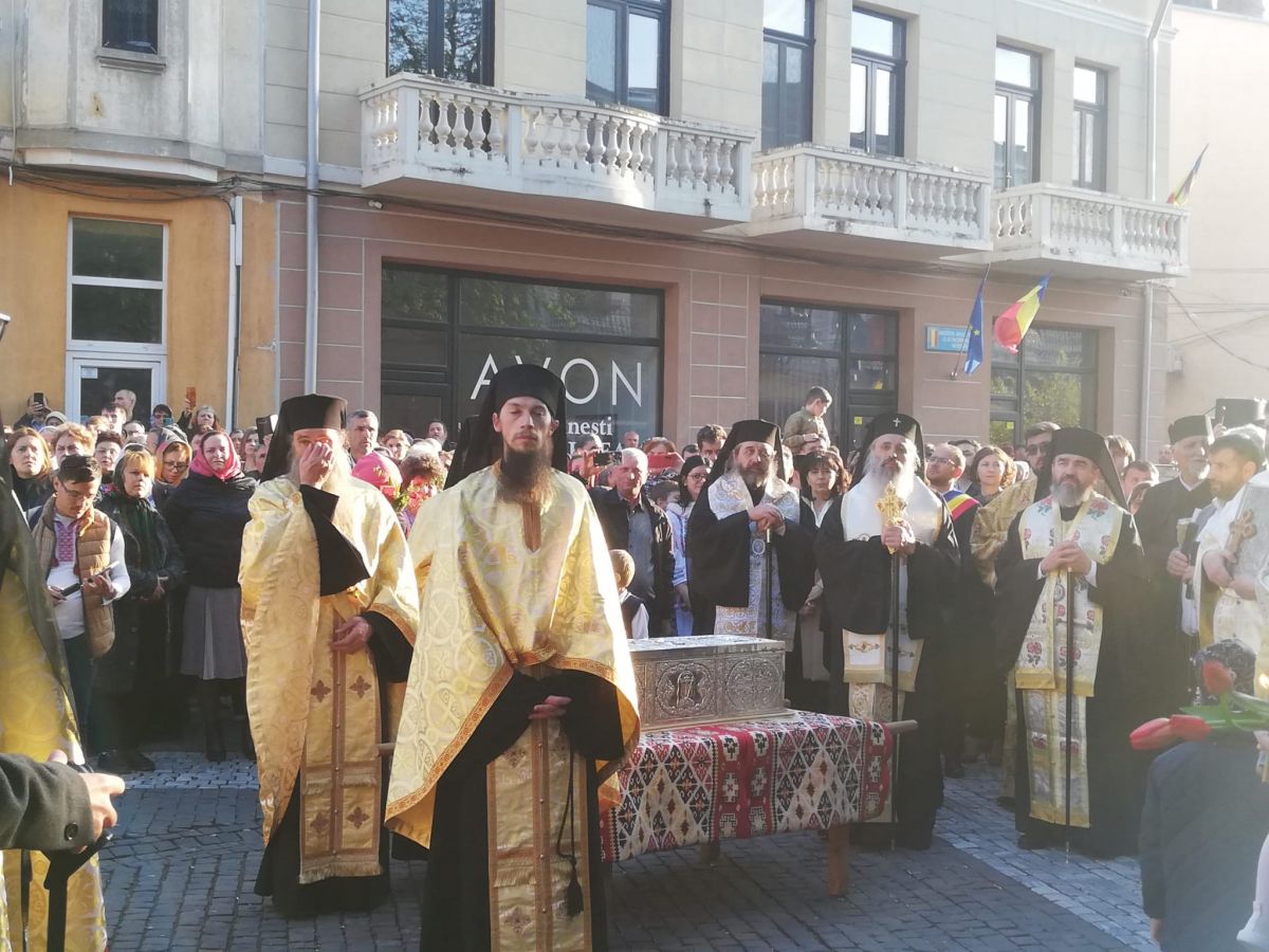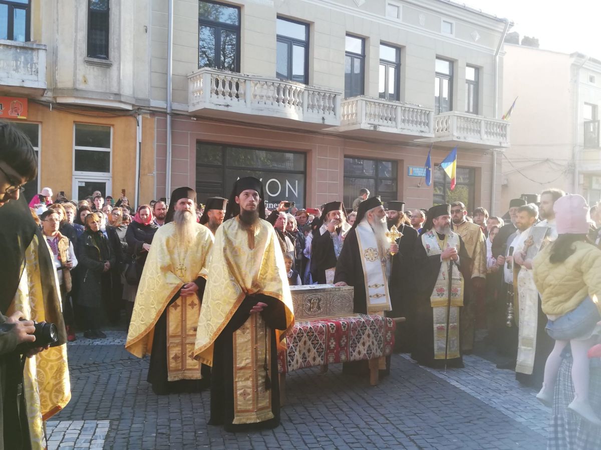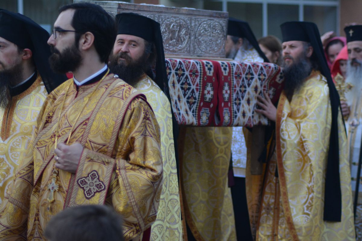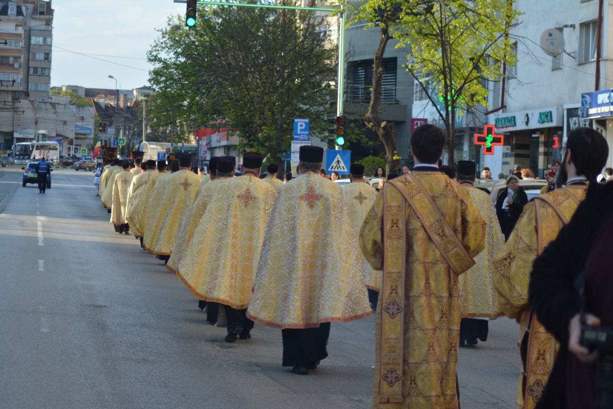 Procesiunea a fost precedată de slujba Vecerniei unită cu Litia, oficiată de către IPS Părinte Mitropolit Teofan, PS Părinte Episcop-vicar Nichifor Botoșăneanul și PS Părinte Arhiereu-vicar Gherontie Hunedoreanul.