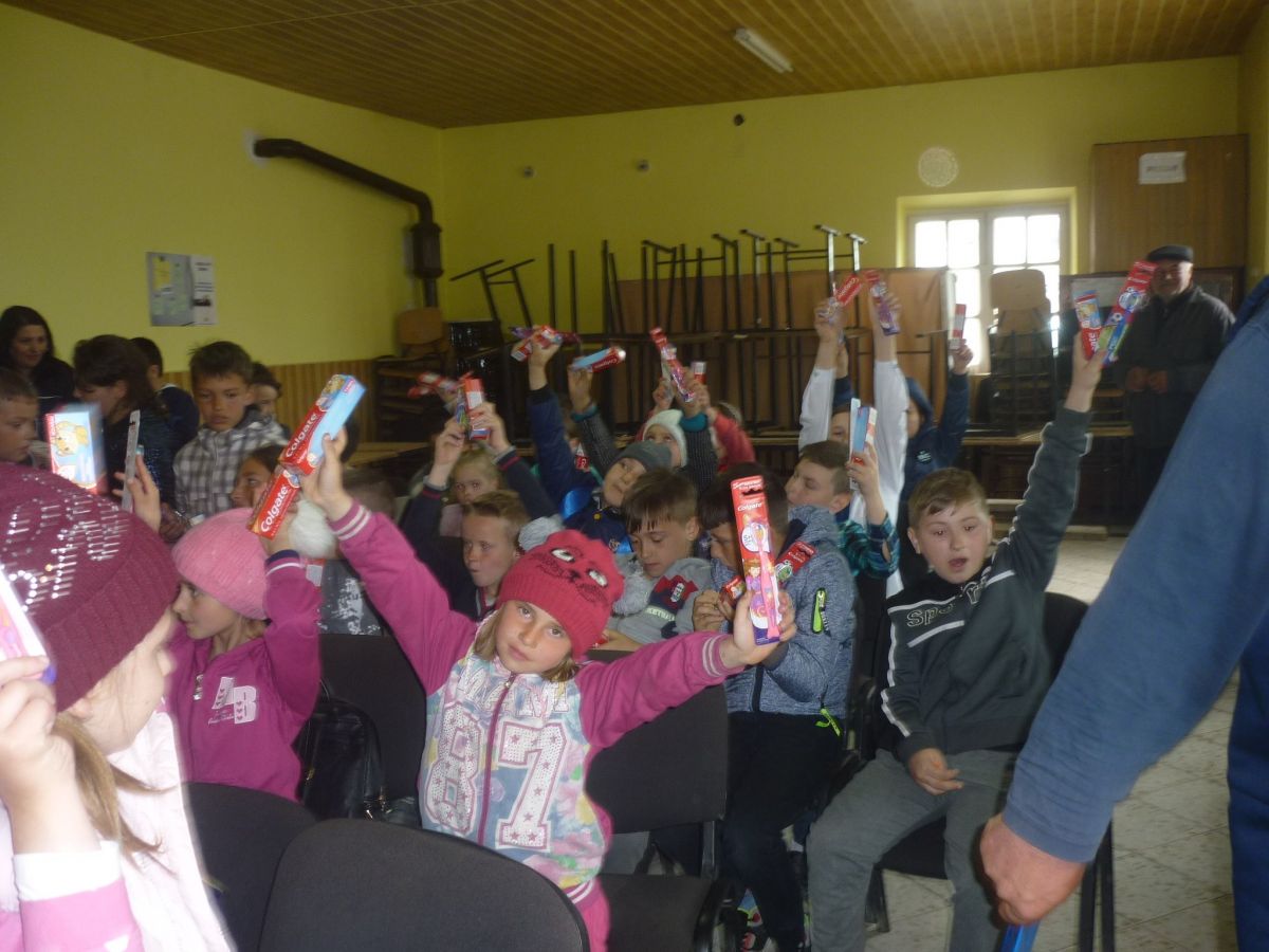 Și pentru că acțiunea s-a desfășurat într-o notă relaxată și prietenească, ca de la mamă la copil, copiii au interpretat o mini-piesă de teatru, intitulată “La stomatolog”, scris de către Anca Grigoraș, președinte al OFL Darabani, la finalul căreia au primit pachețele cu periuțe și paste de dinți, dar și dulciuri și fructe.
