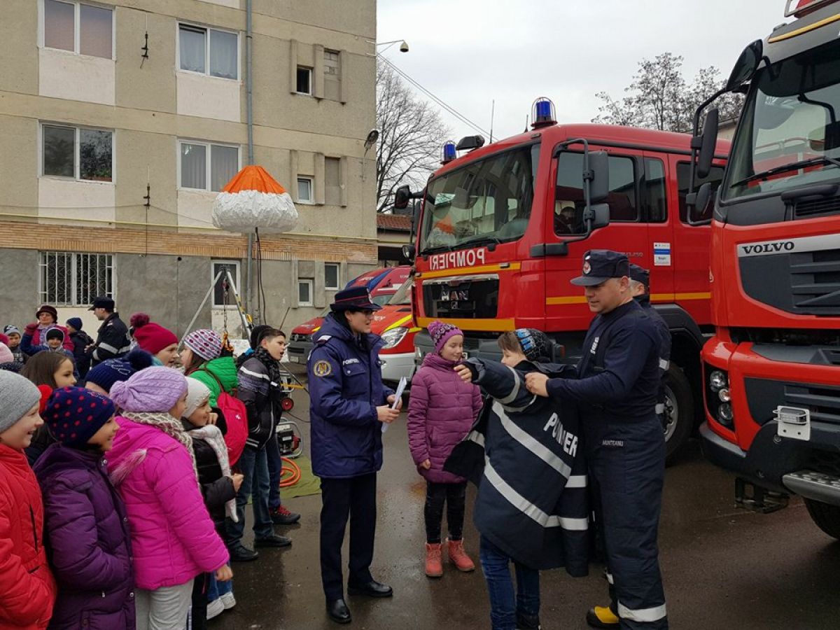 În timp ce unii elevi au vrut să îi cunoască pe pompieri la ei „acasă”, alții au preferat să le fie gazde. Astfel, inspectorii de prevenire au fost prezenți în școli și i-au învățat cum să prevină sau cum să se comporte în caz de incendiu sau cutremur, prezentând, totodată, materiale de informare preventivă din campaniilor derulate la nivel naţional F.O.C.– Flăcările Omoară Copii”, “R.I.S.C. – Renunţă! Improvizaţiile Sunt Catastrofale!” şi „Nu tremur la cutremur”.