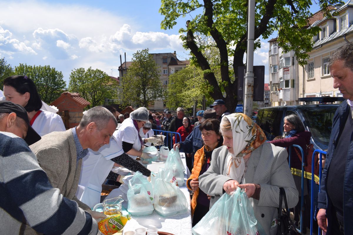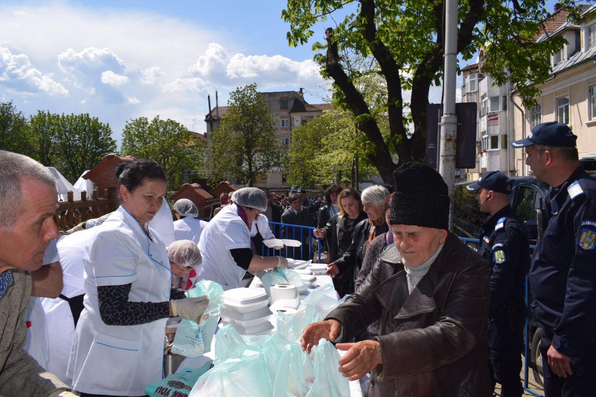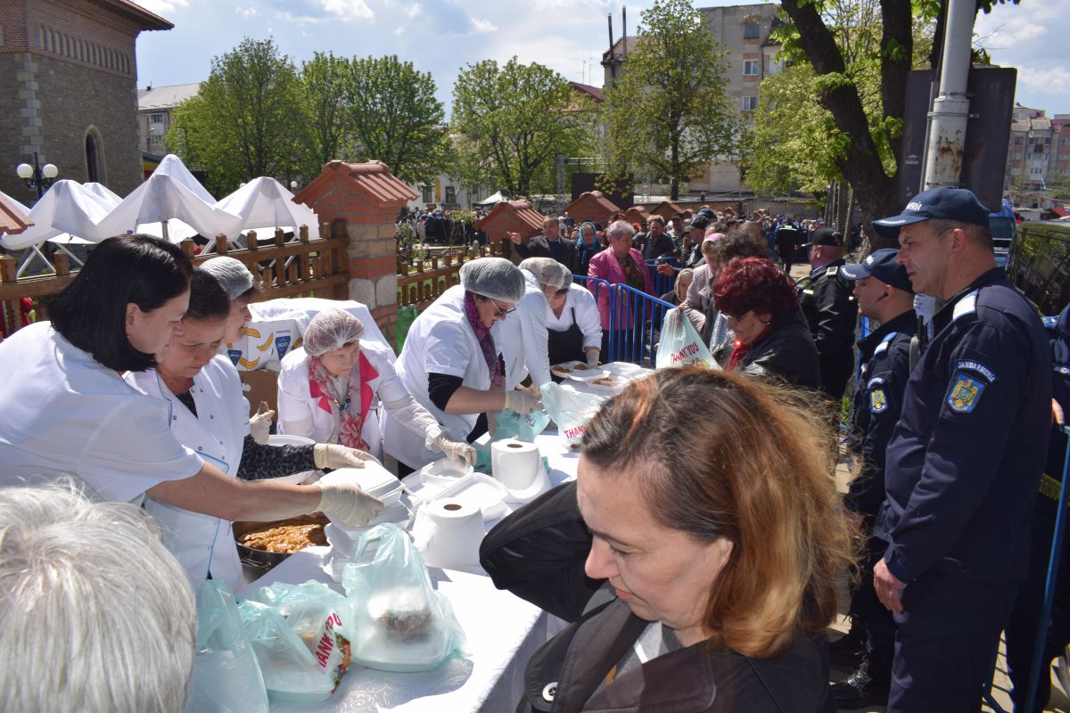 „Am pregătit 1.200 de porții de sarmale, 1.200 de porții de cozonac, pâine și avem și câte un pahar de vin sau suc pentru copii. Pentru sarmale fetele noastre au prelucrat 150 de kilograme de carne, 35 de kilograme de orez, 35 de litri de ulei, 70 kg de ceapă și morcov, 24 de cutii de bulion, 43 de kg de varză murată. A fost un efort susținut de două zile și le mulțumesc pe această cale și bineînțeles au participat și colegele de la Centrul de Îngrijire la Domiciliu seniori”,