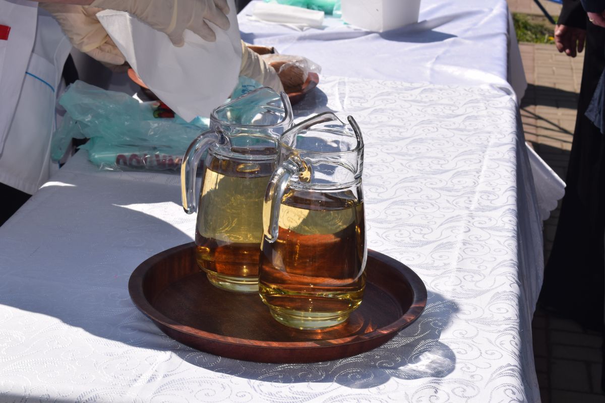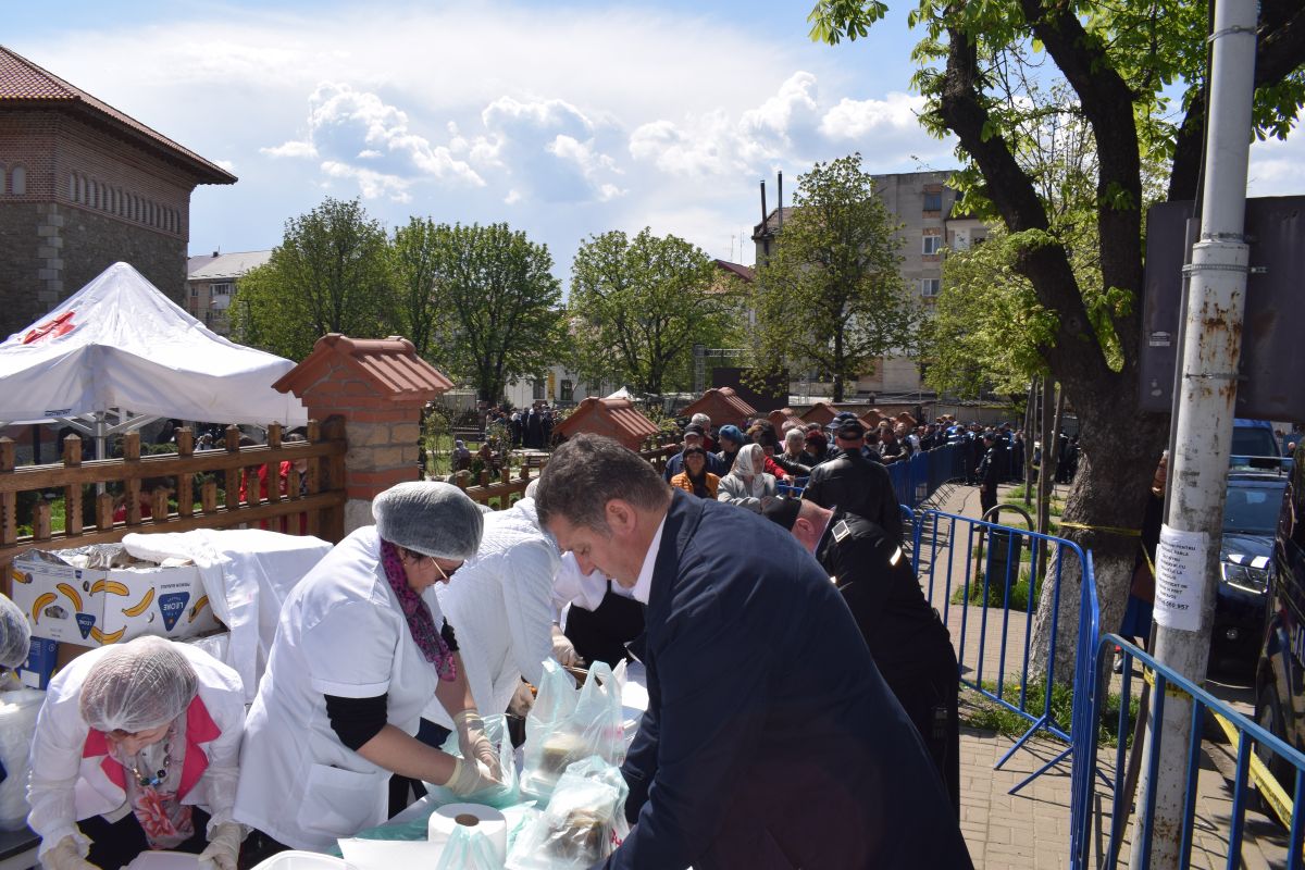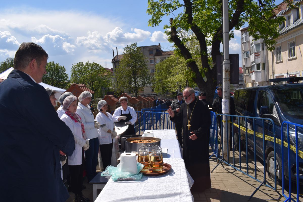 Înainte de a fi oferite credincioșilor, bucatele au fost binecuvântate de preotul Dumitru Mateciuc.