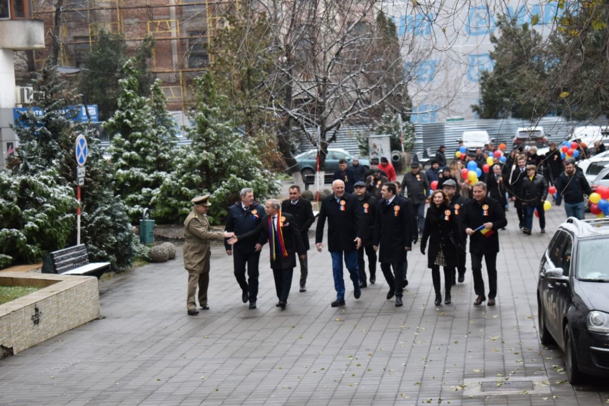 La scurt timp din Palatul Administrativ a coborât prefectul Sorin Cornilă care era așteptat de colegii de partid. După saluturile firești a pornit spre zona manifestațiilor și grupul PNL în frunte cu Costel Șoptică, președintele filialei județene, Gheorghe Sorescu, subsecretar de stat în cadrul MAI, prefectul Sorin Cornilă, parlamentari, consilieri județeni sau locali, directori. A lipsit Cătălin Flutur.
