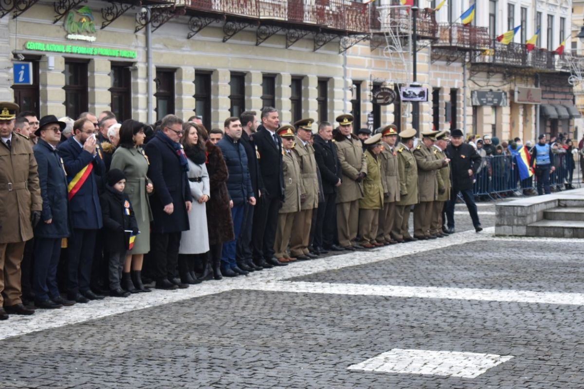 La partea de discursuri singurii care au avut alocuțiuni au fost prefectul Sorin Cornilă, președintele Consiliului Județean, Doina Federovici, primarul Cosmin Andrei și Ovidiu Damian, șeful Garnizoanei Militare.