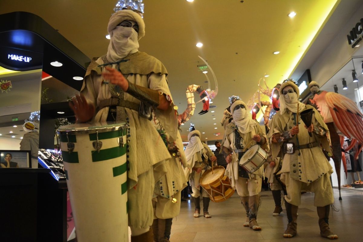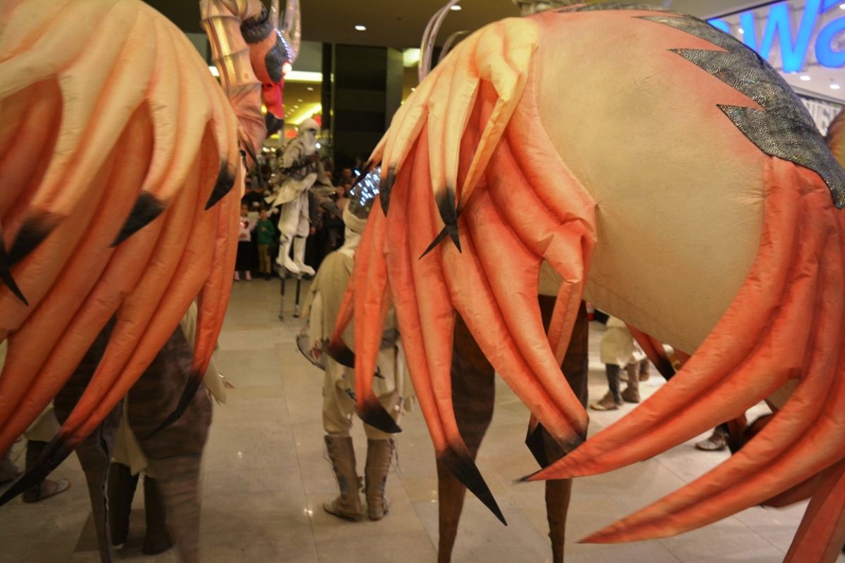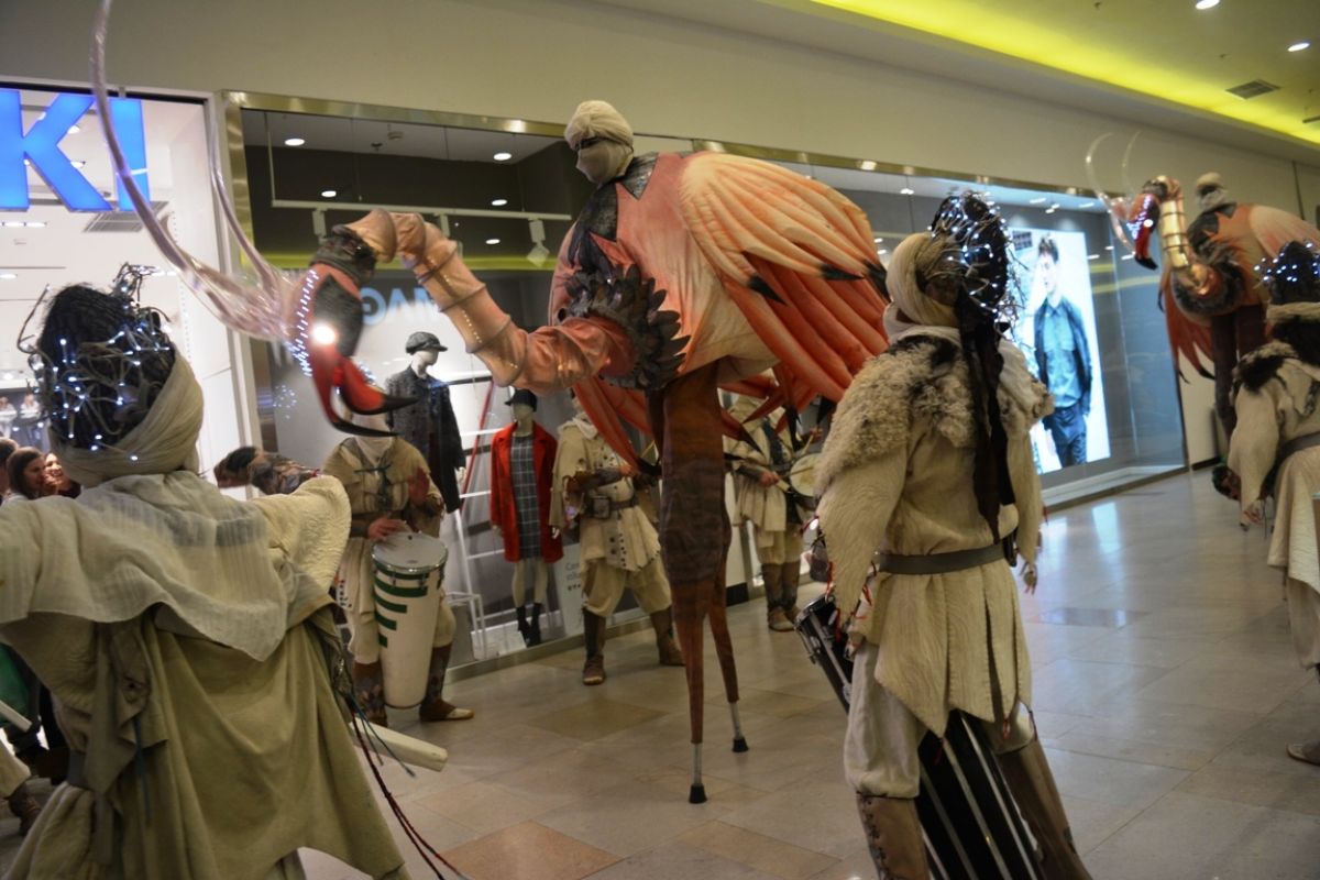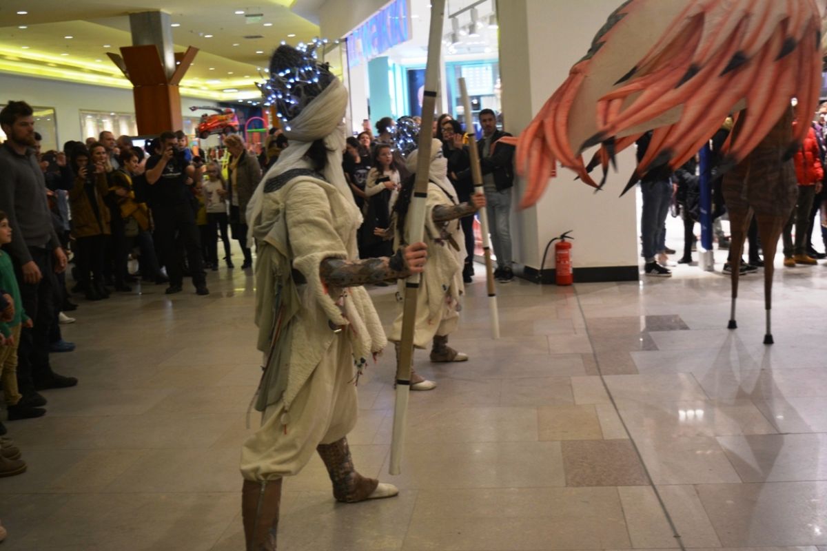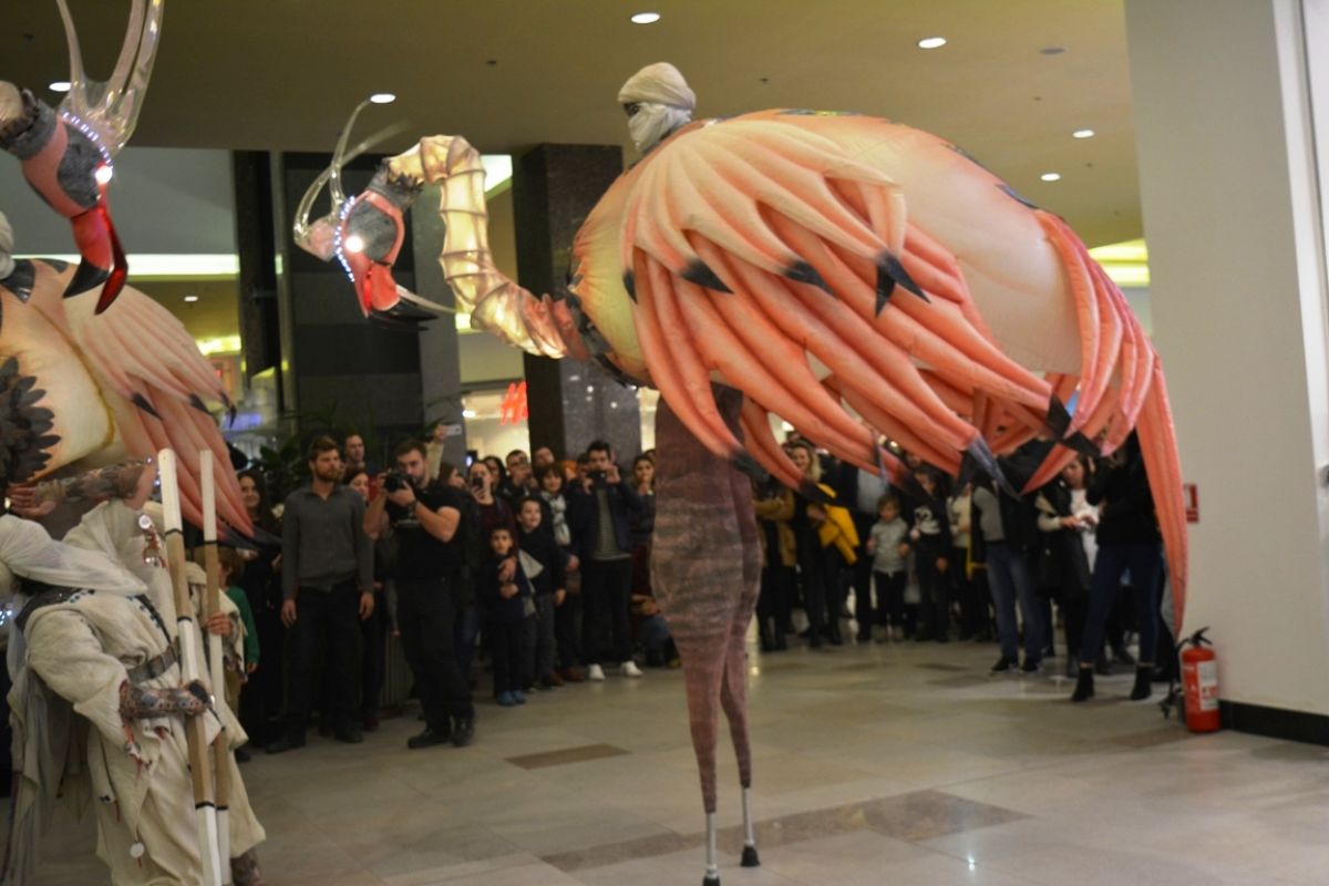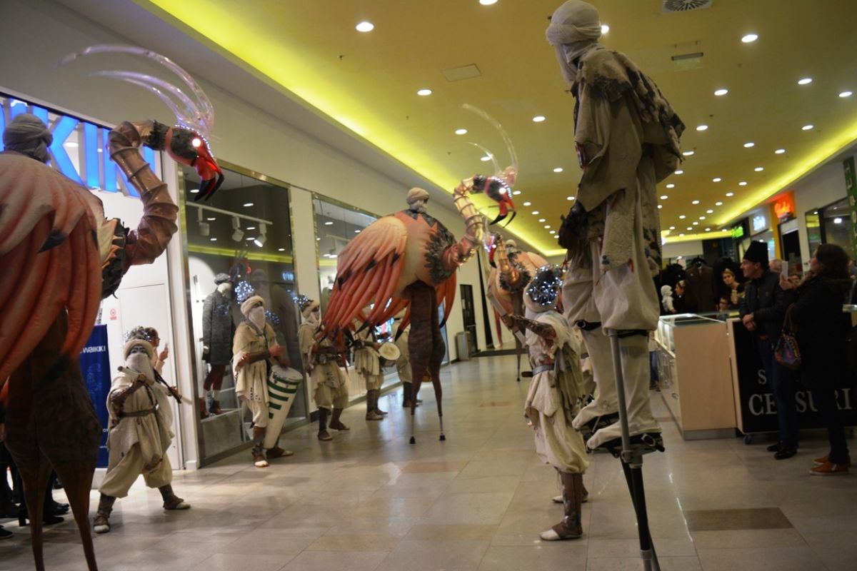 Trei păsări gigantice, oameni pe picioroange și o combinație aparte de dans, muzică și lumină au determinat sute de oameni, între care și o mulțime de botoșăneni, să îi urmeze în tot traseul lor prin centrul comercial.