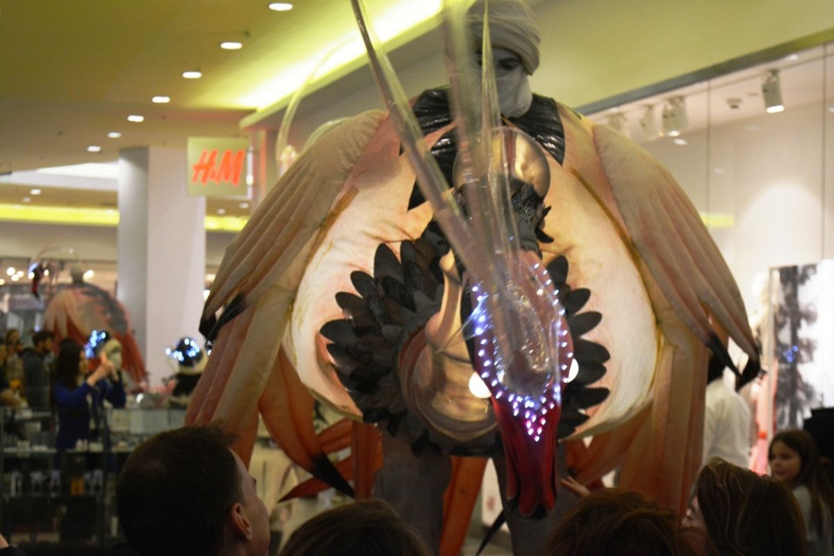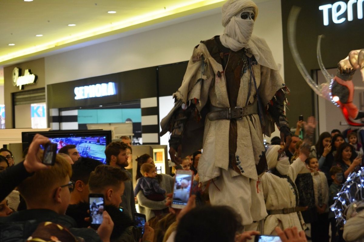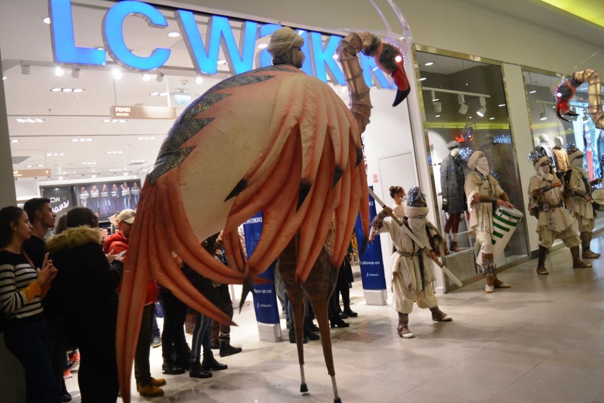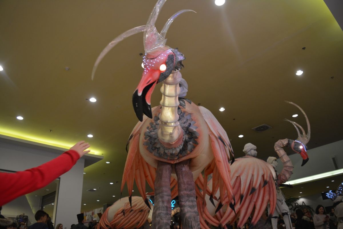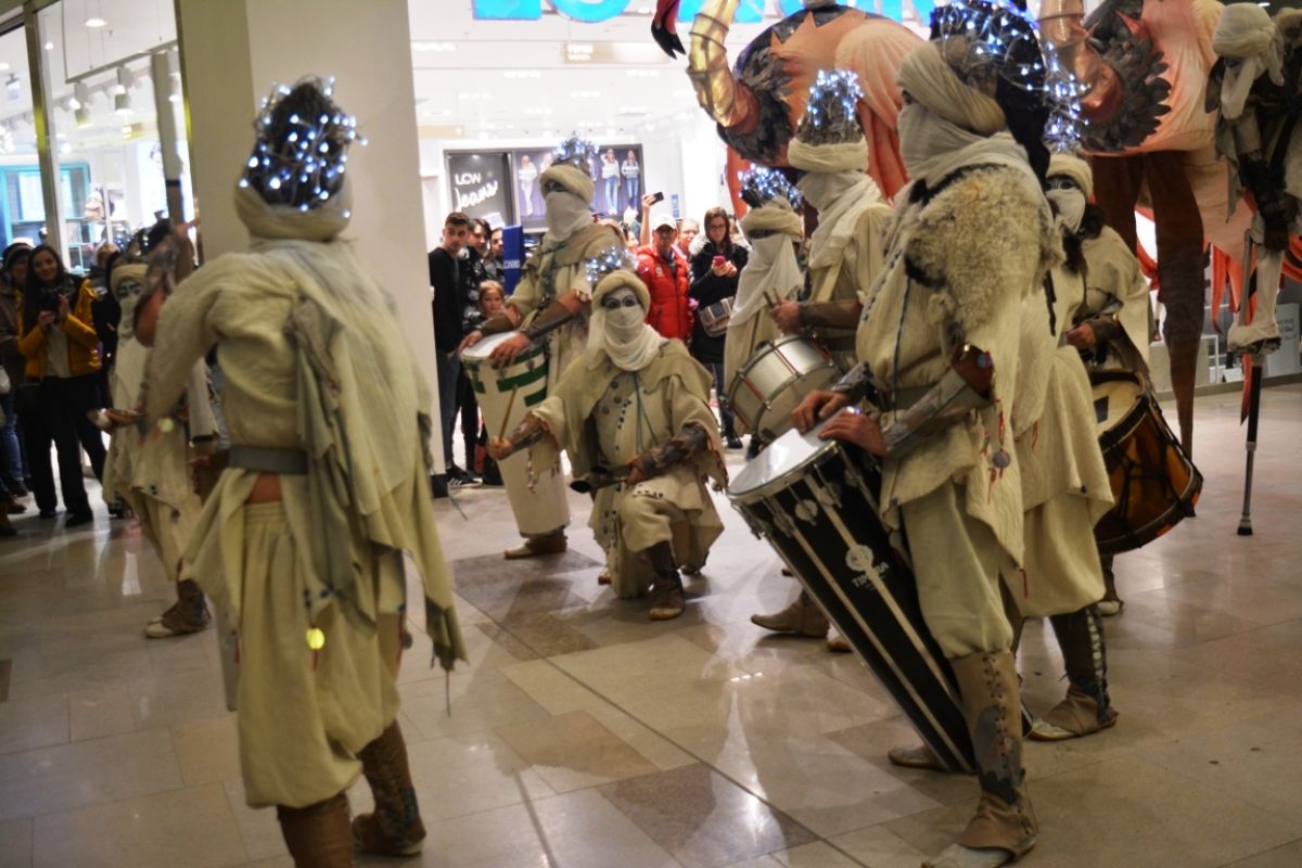Trei păsări gigantice, oameni pe picioroange și o combinație aparte de dans, muzică și lumină au determinat sute de oameni, între care și o mulțime de botoșăneni, să îi urmeze în tot traseul lor prin centrul comercial.
