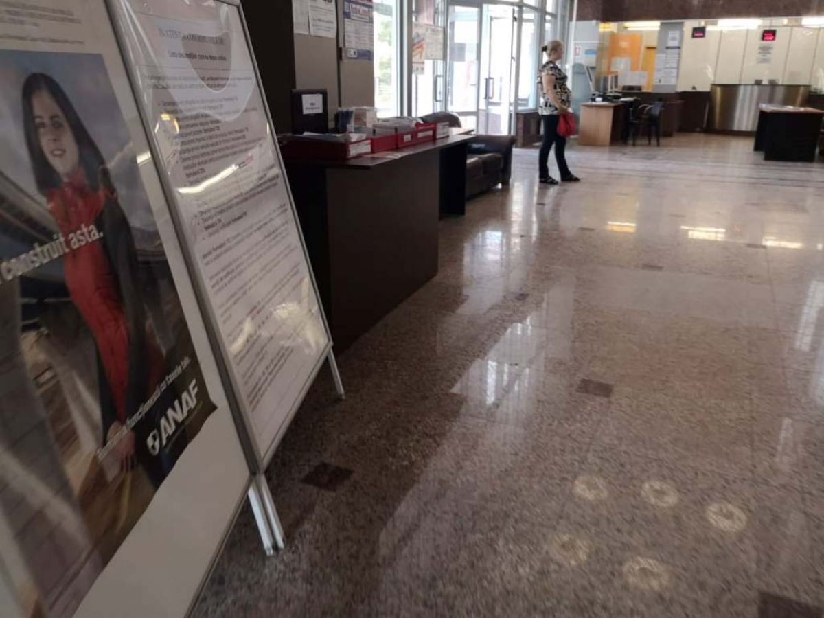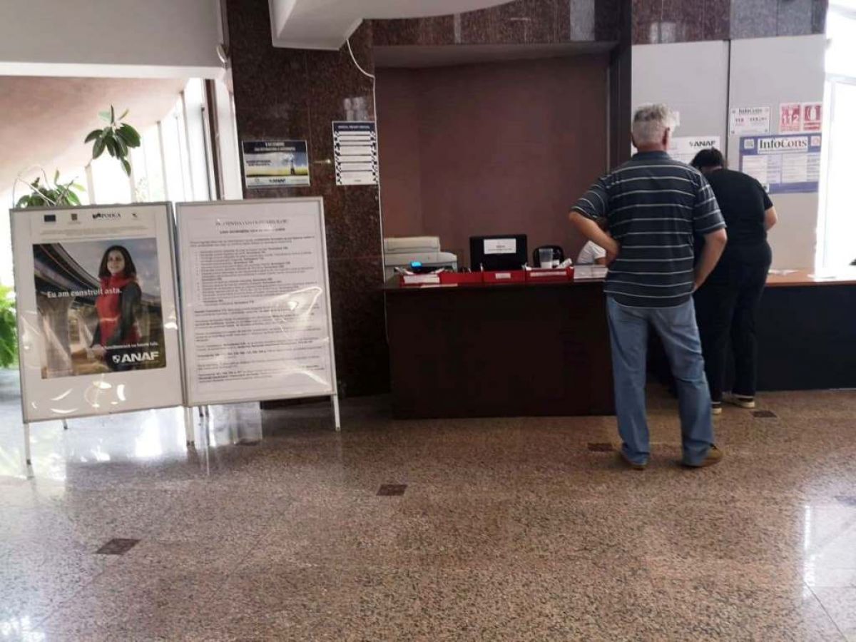 În schimb, sunt postate mai multe anunțuri impozante cu sigla ANAF, dând astfel impresia oamenilor că ar fi vorba de un birou al Administrației Financiare.