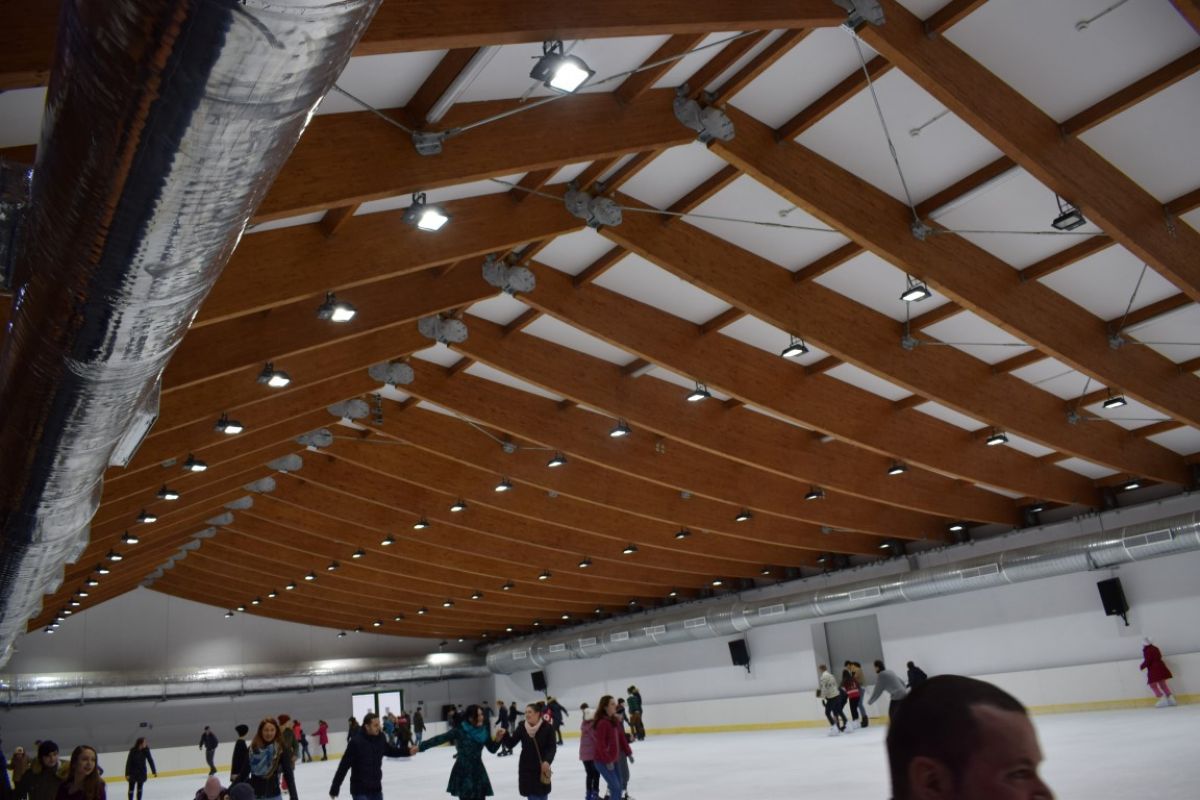 Noul patinoar chiar arată spectaculos, măcar și datorită faptului că totul este nou, de la patinele pe care le închiriază amatorii sportului pe gheață până la vestiare sau bănci ori suprafața efectivă pentru patinaj.