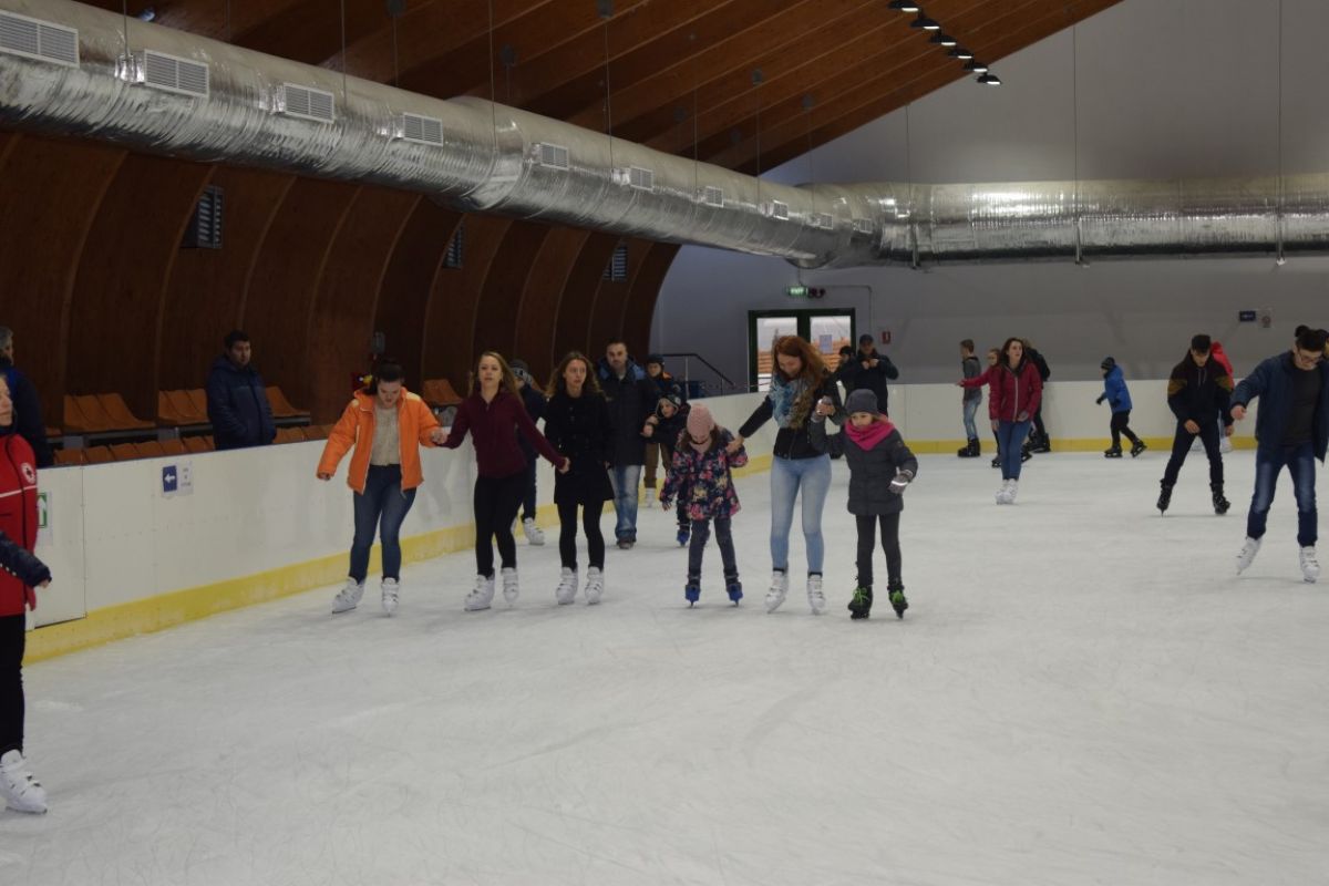 Mai apoi a urmat îmbulzeala pentru obținerea unei perechi de patine, salariații de la Direcția de Servicii Publice, Sport și Agrement abia mai făcând față valului de solicitări. Și punctul final, patinoarul efectiv.