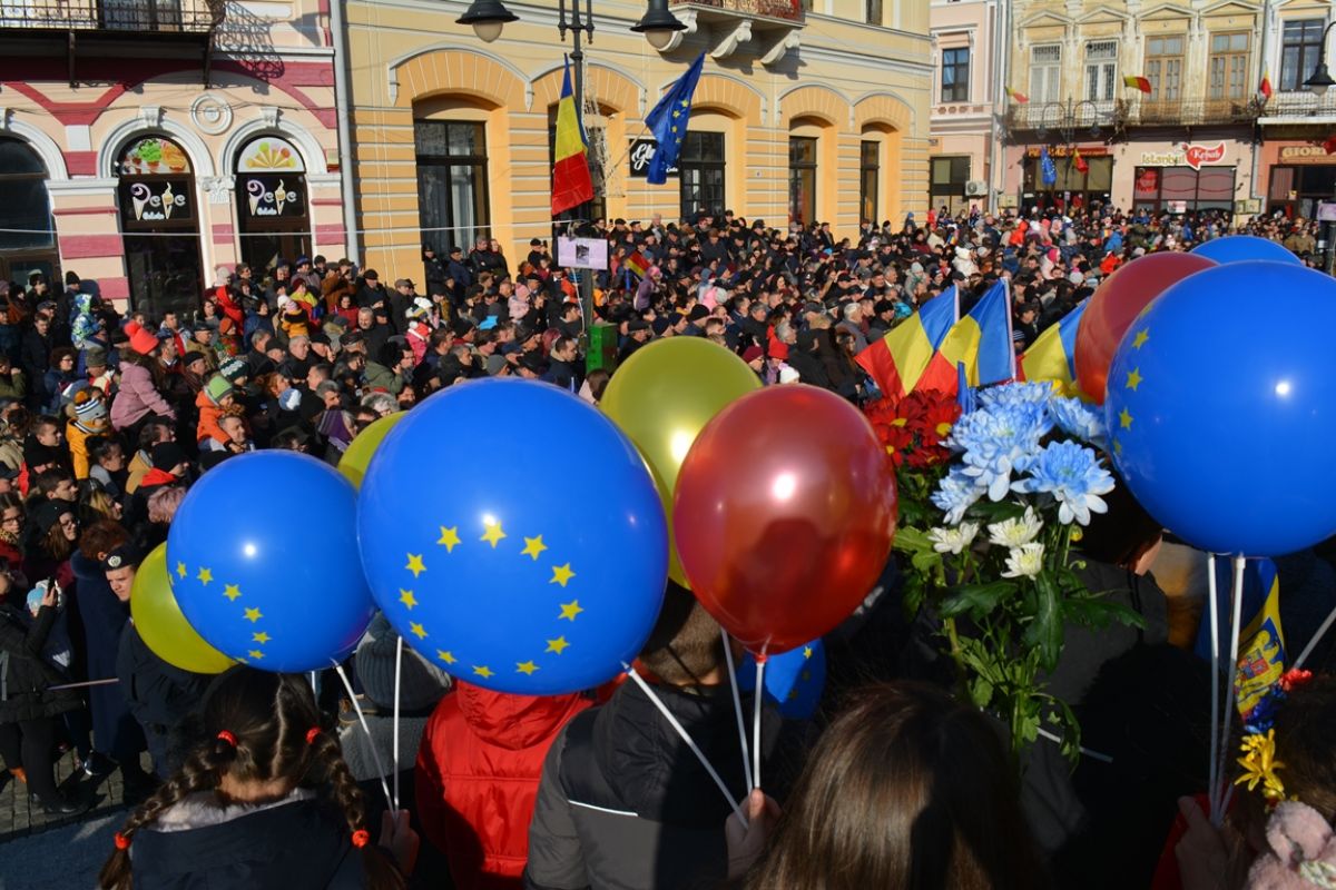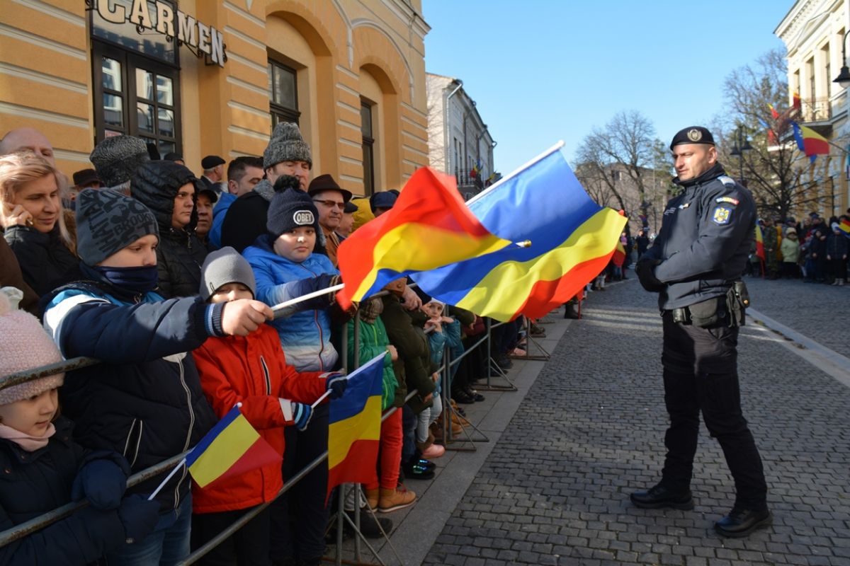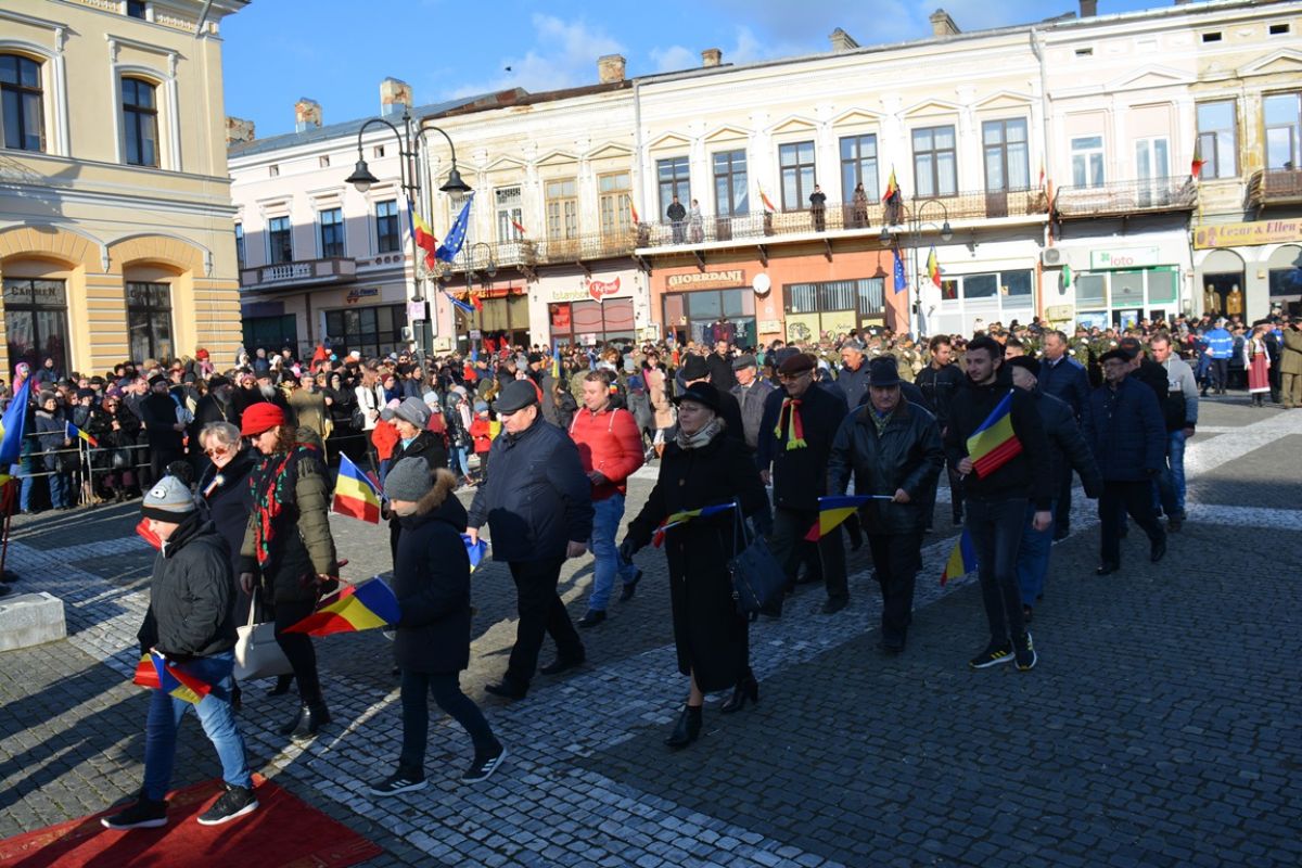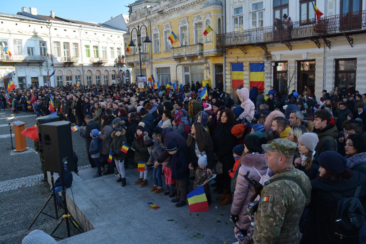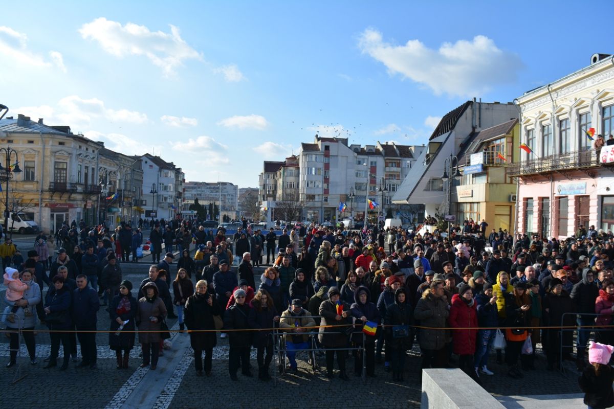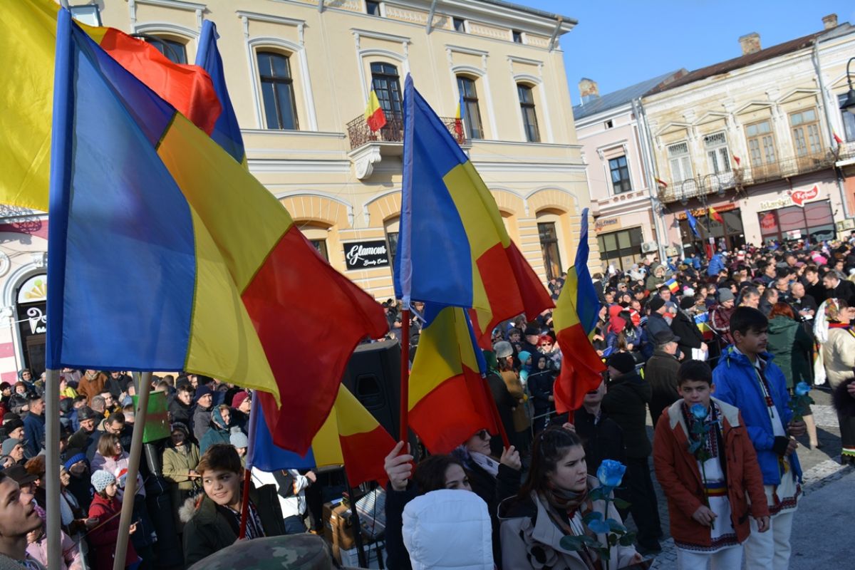 Piața 1 Decembrie 1918 a retrăit astăzi la amiază momentele de odinioară, când era înțesată de lume. Ziua Națională a României a adus în Centrul Istoric al Botoșanilor peste 1.000 de oameni.