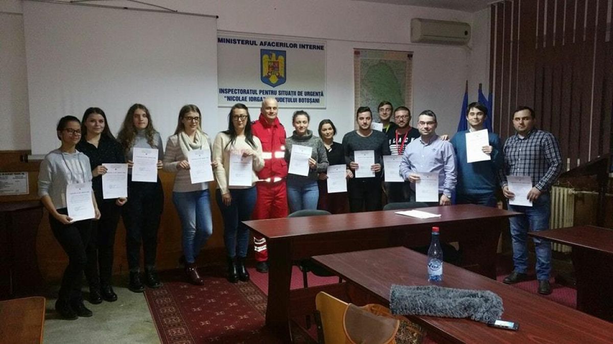 19 din cei 20 de botoșăneni înscriși în cadrul proiectului național „Salvator din pasiune” au finalizat primele două etape de pregătire, respectiv cursul introductiv privind structura, misiunile şi atribuţiile inspectoratului și cel de prim ajutor de bază.