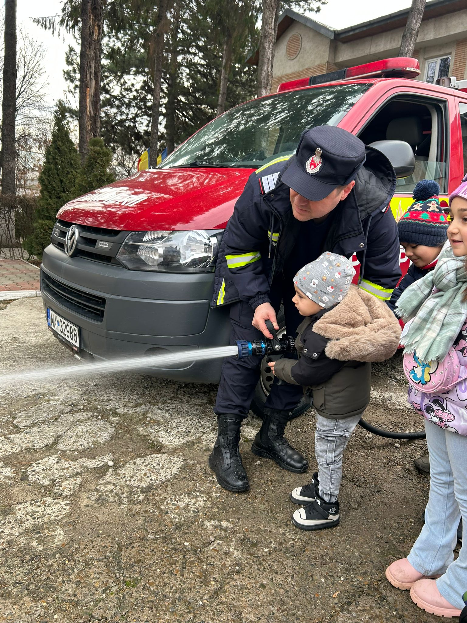 Aceștia au avut ocazia să vadă cum se folosește fiecare accesoriu, în parte. Copiii au urcat, pe rând, în autospecialele de intervenție și au aflat cum protejează servanţii pompieri pe timpul incendiilor cu ajutorul aparatului de respirat cu aer comprimat şi a căştii de protecţie.