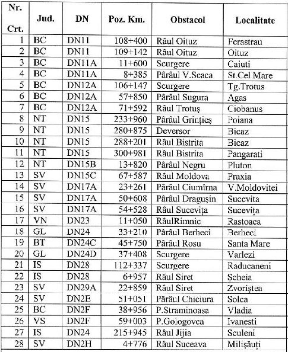 În lista podurilor care urmează să fie expertizate se află și unul din județul Botoșani, situat pe DN 24C, pe Pârâul Roșu, în Santa Mare.