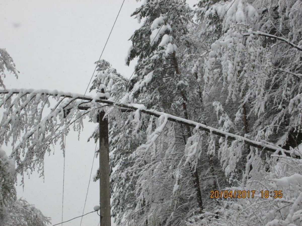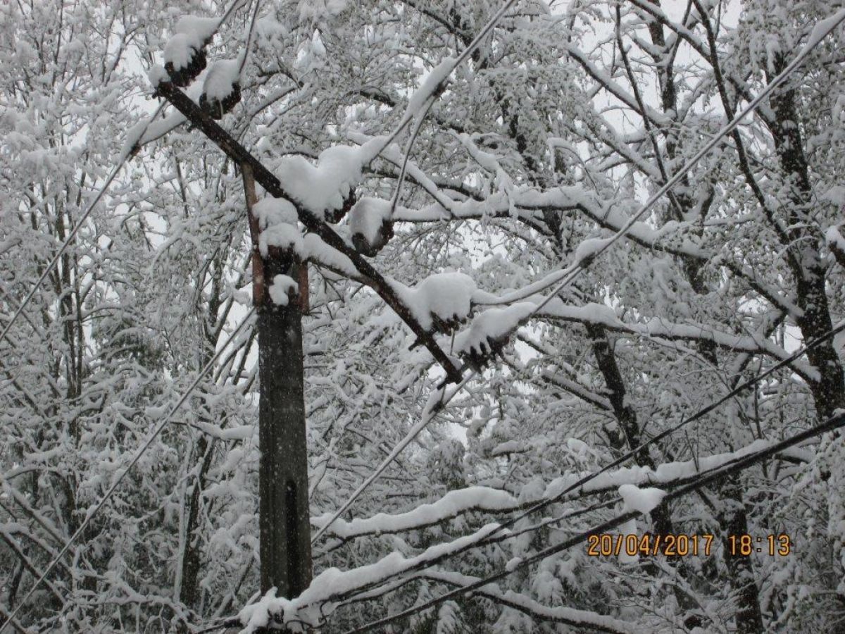 Pe parcursul nopţii de 20 spre 21 aprilie ninsoarea abundentă însoţită de vânt ce a ajuns la rafala şi la 60km/h, precum şi lipsa vizibilităţii şi a căilor de acces au îngreunat lucrările pentru identificarea şi remedierea avariilor la sistemul de distribuţie a energiei, se arată într-un comunicat de presă.