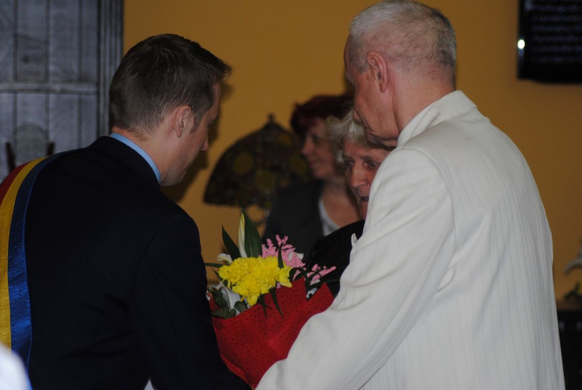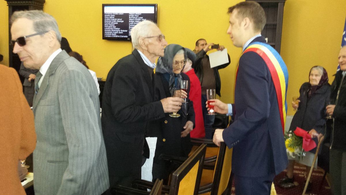 Vârstnicii, îmbrăcați la patru ace, s-au adunat în sala de Consiliu Local în jurul orei 10.00 și au așteptat cu nerăbdare momentul începerii festivității. De altfel, reprezentanții municipalității au pregătit pentru aceștia buchete mari de flori, diplome, cupe de șampanie, pișcoturi și nu în ultimul rând un premiu în valoare de 1.000 de lei. După intonarea Imnului României, edilul orașului le-a mulțumit celor prezenți pentru că au răspuns pozitiv la invitație și le-a transmis următorul mesaj: ”În primul rând vreau să vă mulțumesc că ați răspuns invitației de a sărbători împreună aceste momente de bucurie pentru dumneavoastră dar și pentru noi. Vreau să vă mulțumesc pentru tot ceea ce ați făcut în decursul vieții dumneavoastră pentru orașul nostru pentru eforturile și sacrificiile pentru ca acest oraș să arate așa cum arată astăzi. Nu în ultimul rând vreau să vă mulțumesc pentru exemplul pe care îl dați generațiilor mai tinere care poate văzând și urmărind exemplul dumneavoastră, vor învăța ce înseamnă răbdarea, comunicarea, sacrificiul, dragostea și vor lua acest exemplu, peste ani și ani vor fi și ei în locul dumneavoastră. Vreau să vă urez multă sănătate, mulți ani pentru dvs. și familiile dvs., pentru copii și nepoți. La mulți ani și felicitări”, a spus primarul Ovidiu Portariuc.