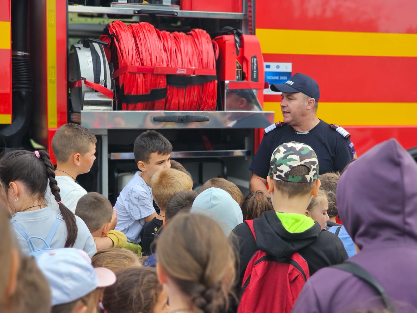 Copiii au fost foarte interesați și despre modul cum funcționează autospeciala de stingere și au vrut să afle pentru ce se folosește fiecare accesoriu.