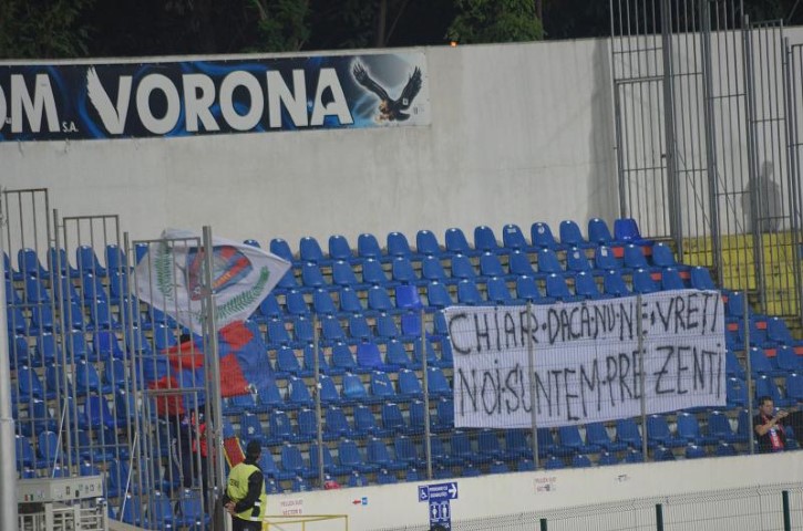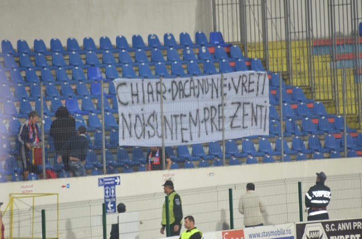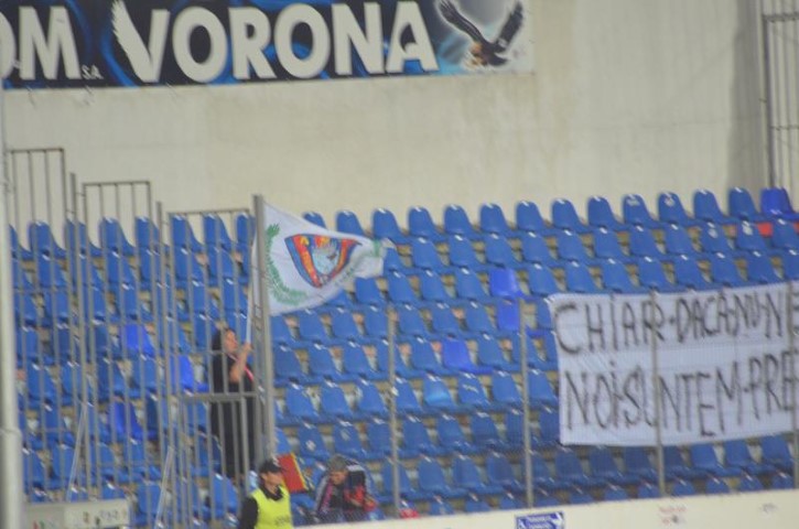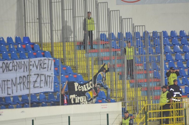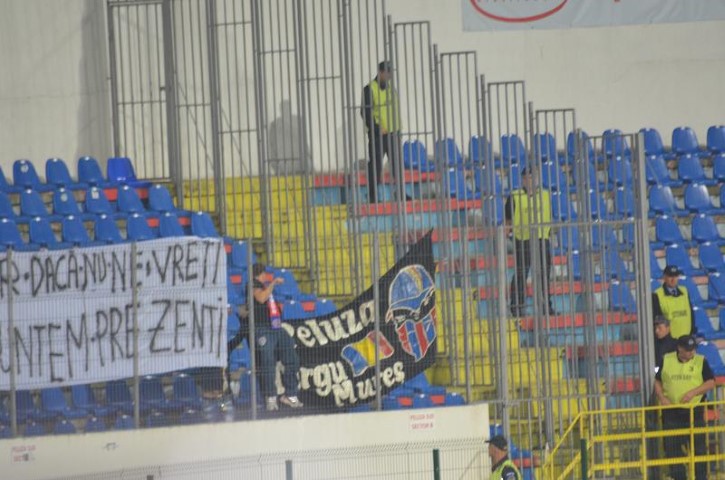 Meciul a început de la ora 18:30 și timp de 45 de minute de joc, plus cele 15 de la pauză, spațiul din stadion destinat galeriei oaspete a rămas pustiu. În minutul 50 al partidei, în ”cușca” celor de la ASA s-a văzut mișcare. Întâi a fost montat un banner cu mesajul : ”Chiar dacă nu ne vreți, noi suntem prezenți”. Și-au afișat mai apoi afișajul Peluzei Tg. Mureș după care au început să fluture un steag și să bată într-o tobă. Sunt veniți la Botoșani în jur de cinci membri ai galeriei. (G.E.)