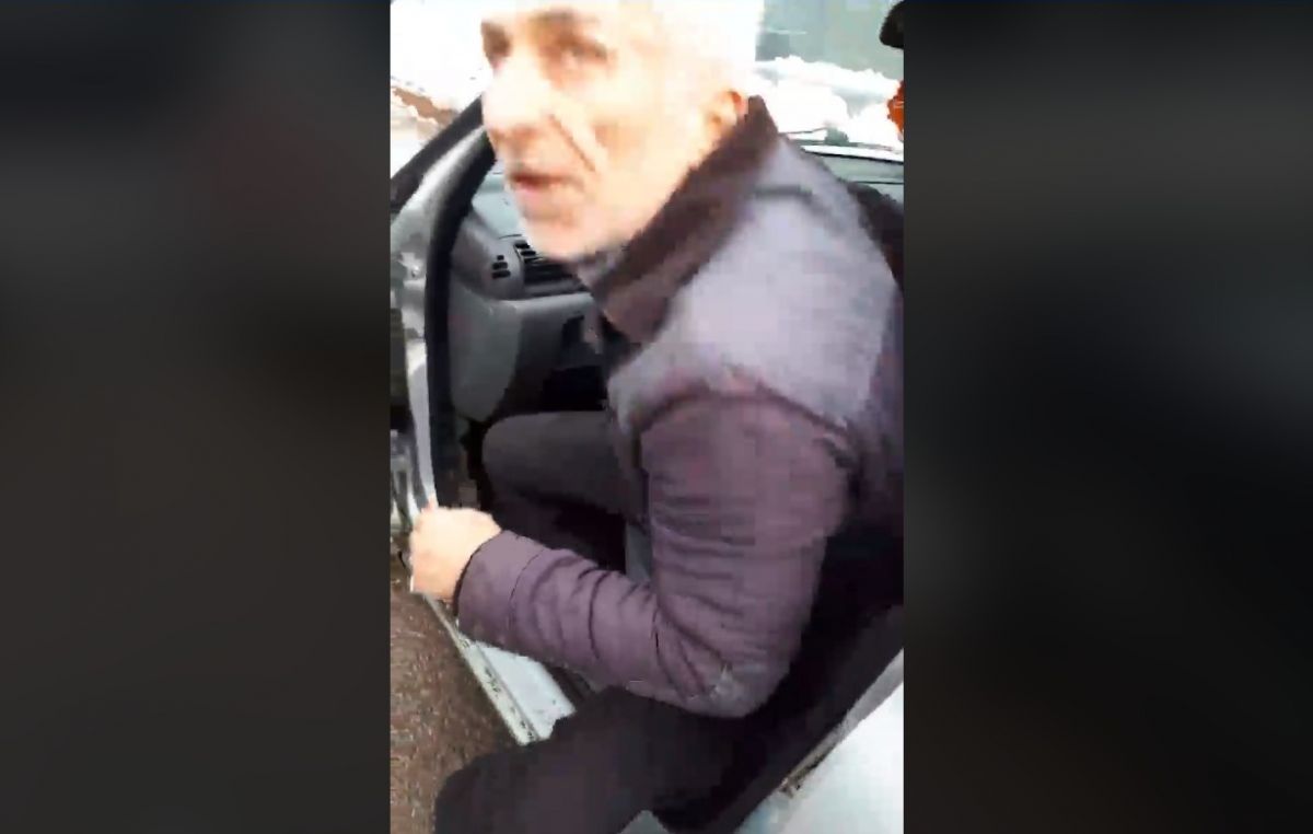 La un moment dat, şoferul de 67 de ani iese din maşină, imaginea pică, dar rămâne sunetul, acesta putând fi momentul în care celălalt conducător auto ar fi lovit cu picioarele.