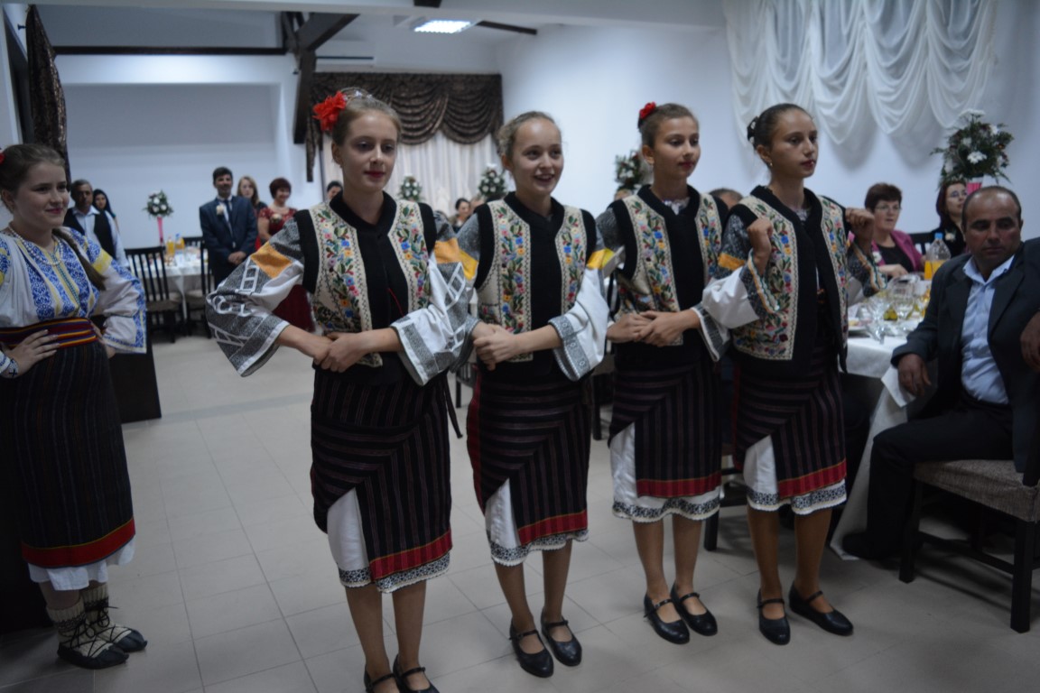 La scurt timp după îndemnul melodic „Vreau să vină întreaga lumea / Să-mi vadă a inimii aleasă” în sală şi-au făcut apariţia o mulţime de copii îmbrăcaţi în costume populare care au încins un joc. Momentul a constituit o surpriză pentru mirii Andreea şi Andrei Hoidrag, dar şi pentru invitaţi. Nuntaşii au lăsat deoparte dansul şi bucatele şi s-au strâns în jurul copiilor pentru a-i admira. Marena Funduianu, o fetiţă membră a Ansamblului Poieniţa, a interpretat chiar şi o melodie specifică zonei cu „hai da hop şi tropa-tropa, joacă fete şi băieţi”, totul cu chiuiturile de rigoare, în doar câteva minute schimbându-se total registrul petrecerii, inclusiv mireasa trebuind să facă pasul de la "sutele de stele" la "tropa-tropa".