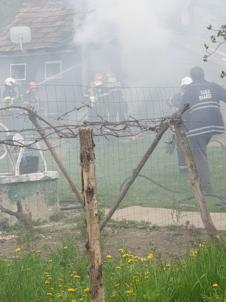La sosirea forțelor de intervenție, ardeau bunurile dintr-o cameră și o parte din acoperișul casei.