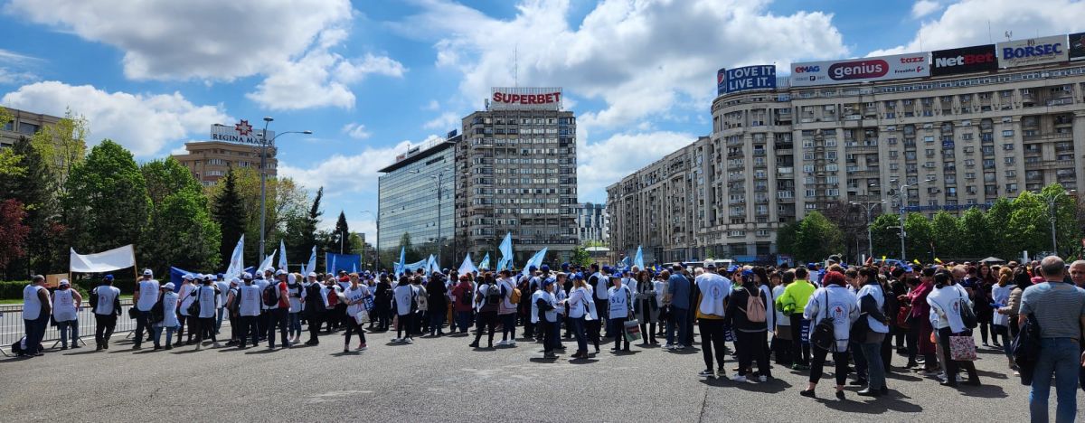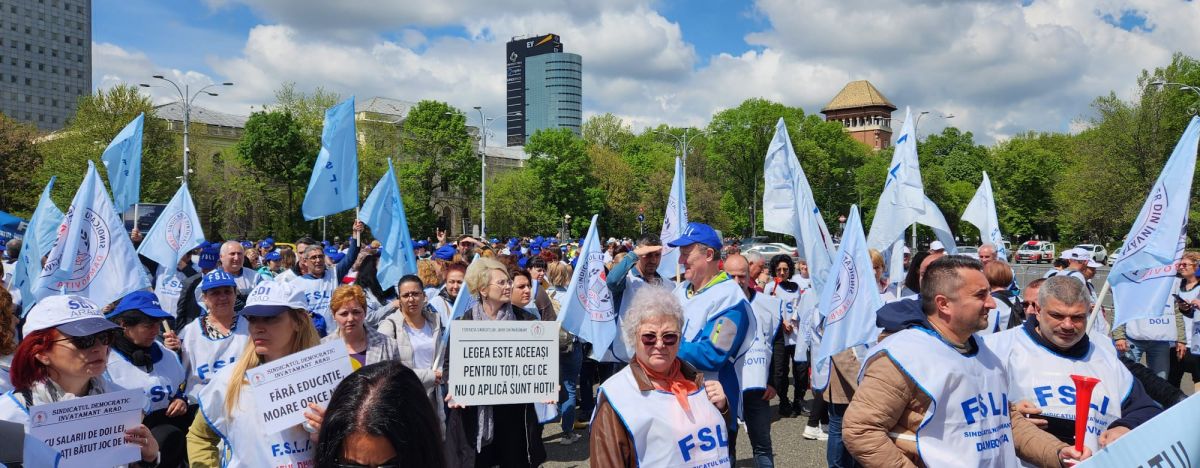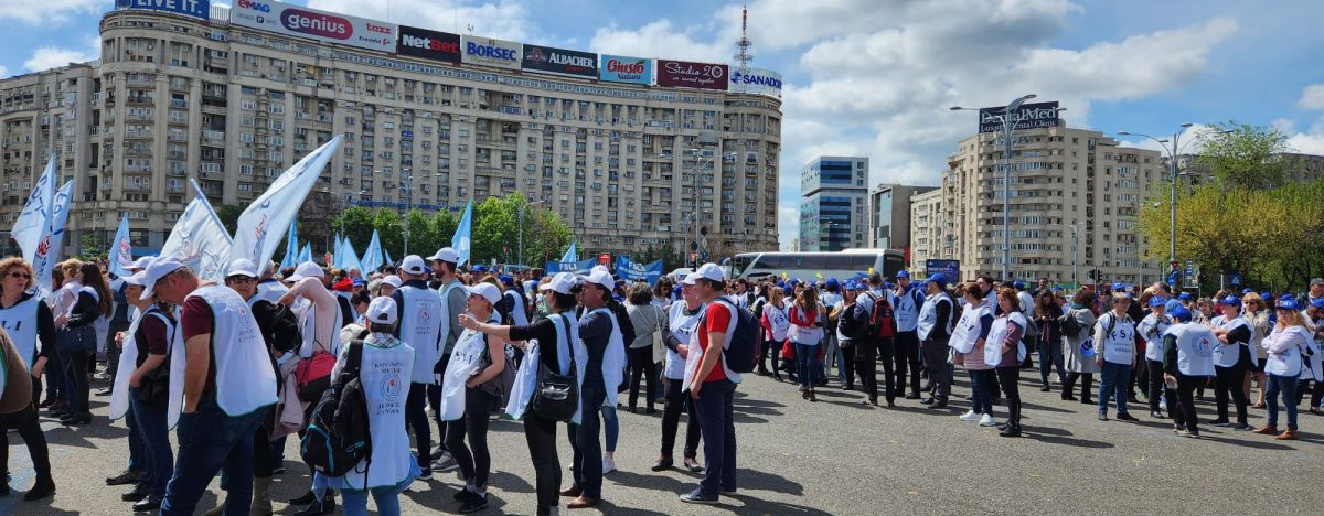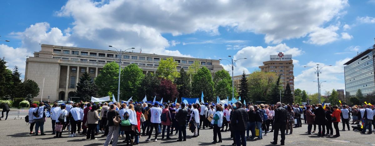Angajații din școli au protestat și astăzi, 26 aprilie 2023, în Piața Victoriei.