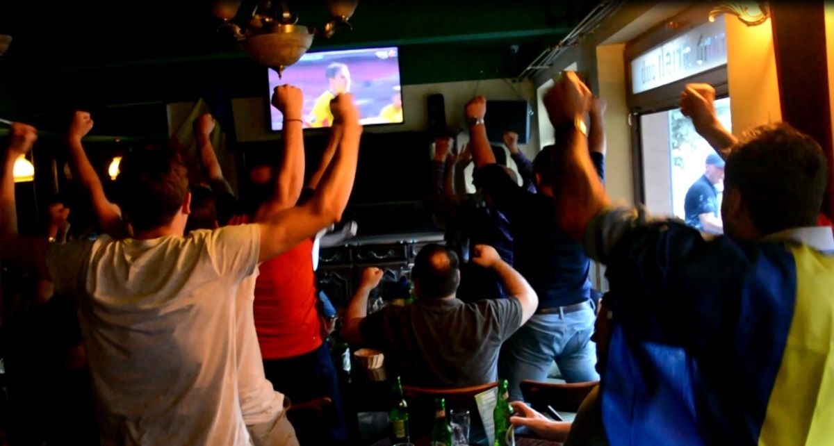 Lovitura de la 11 metri acordată tricolorilor și golul înscris de Bogdan Stancu a produs o explozie de ovații, strigăte, chiuituri la Grand Irish Pub, în timp ce reușita reprezentativei Țării Cantoanelor a generat o tăcere generală.