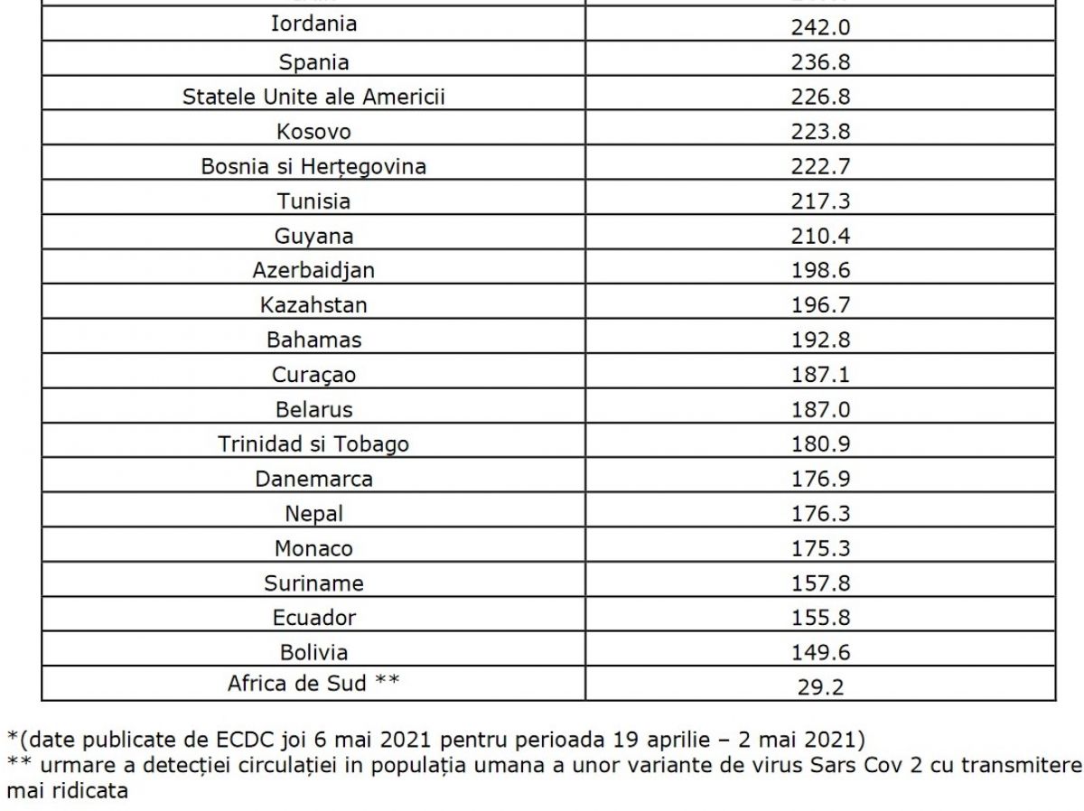 Lista țărilor pentru care se impune carantină la intrarea în România (foto jos):