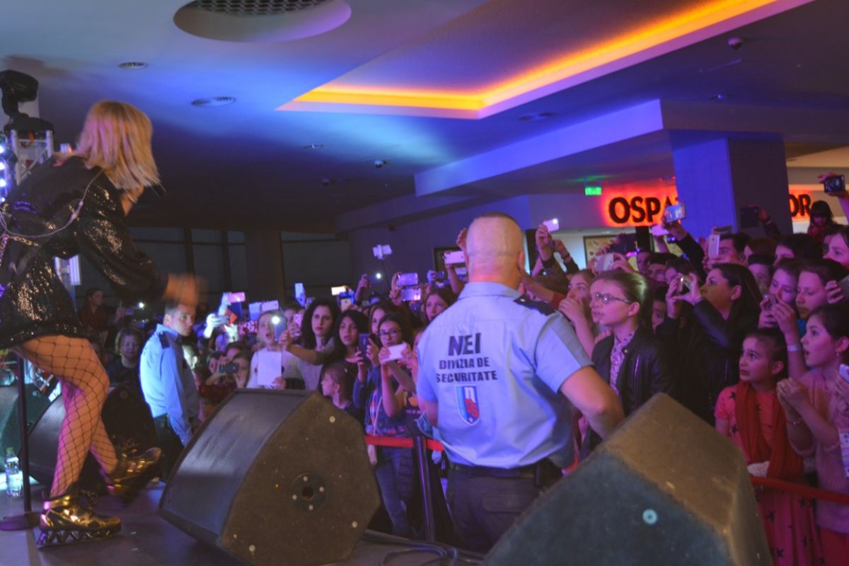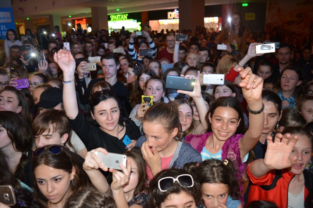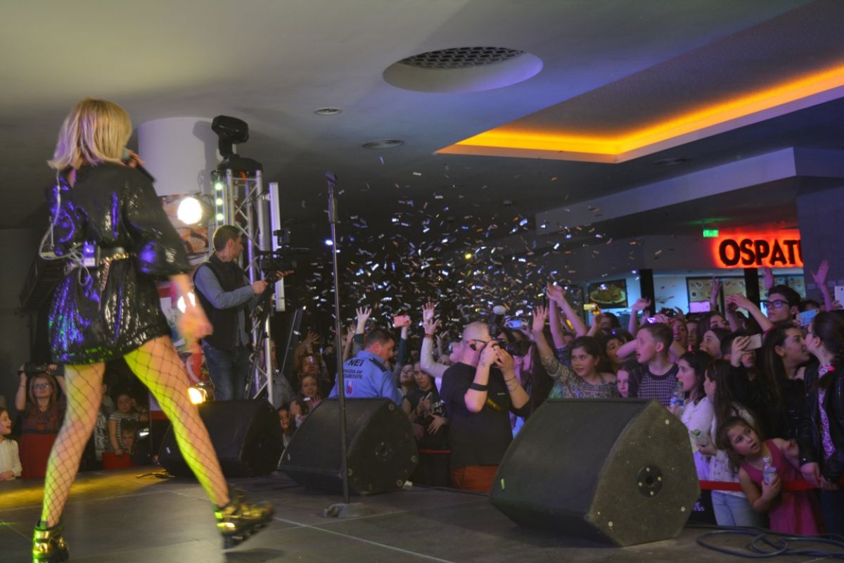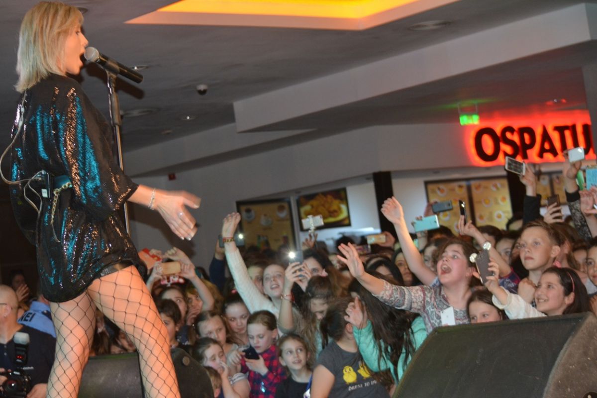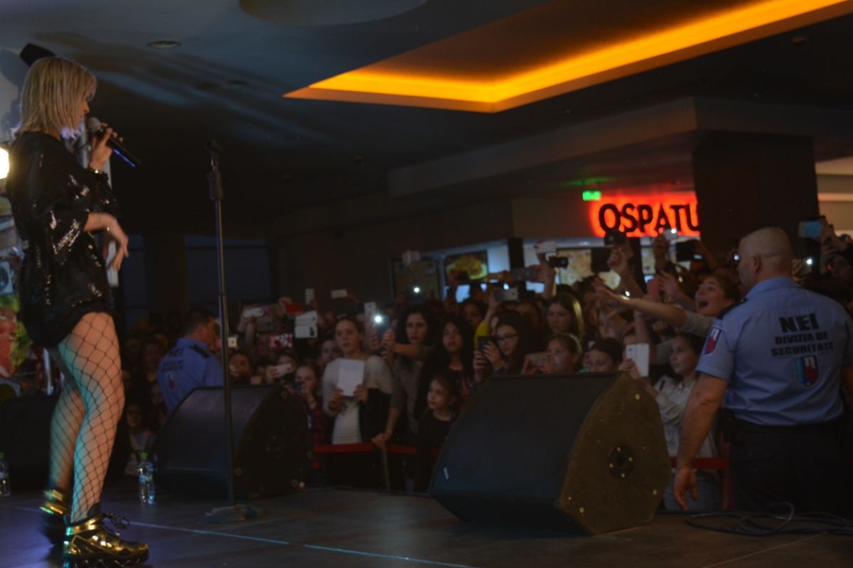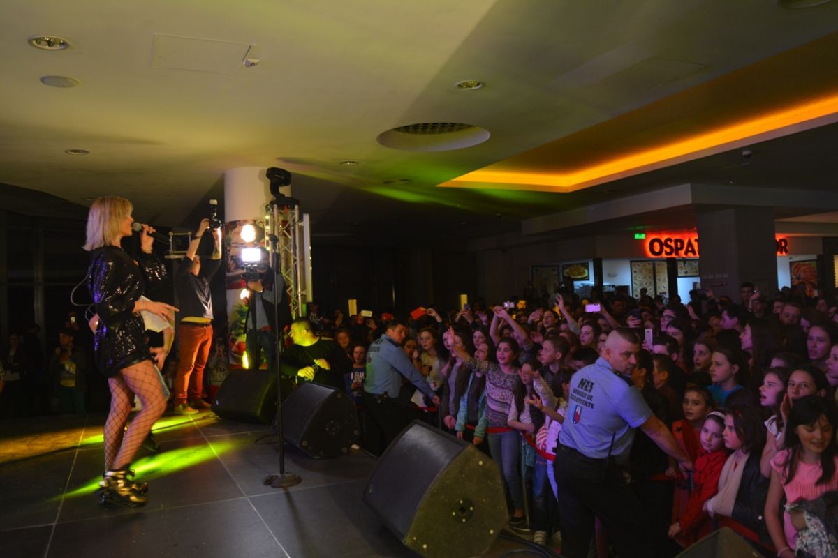 Interpreta născută la Buftea, în 1993 și cunoscută în toată țara după rolul din serialul ”Pariu cu viața” a creat o isterie în cel mai pur sens al cuvântului atunci când urcat pe scenă. Sute de oameni au umplut etajul IV al complexului comercial, mai ales copiii și adolescenții țipând din adâncul sufletului.