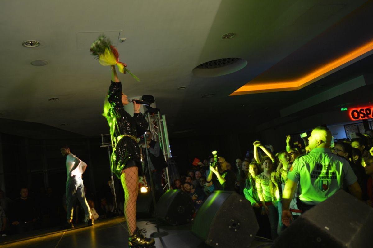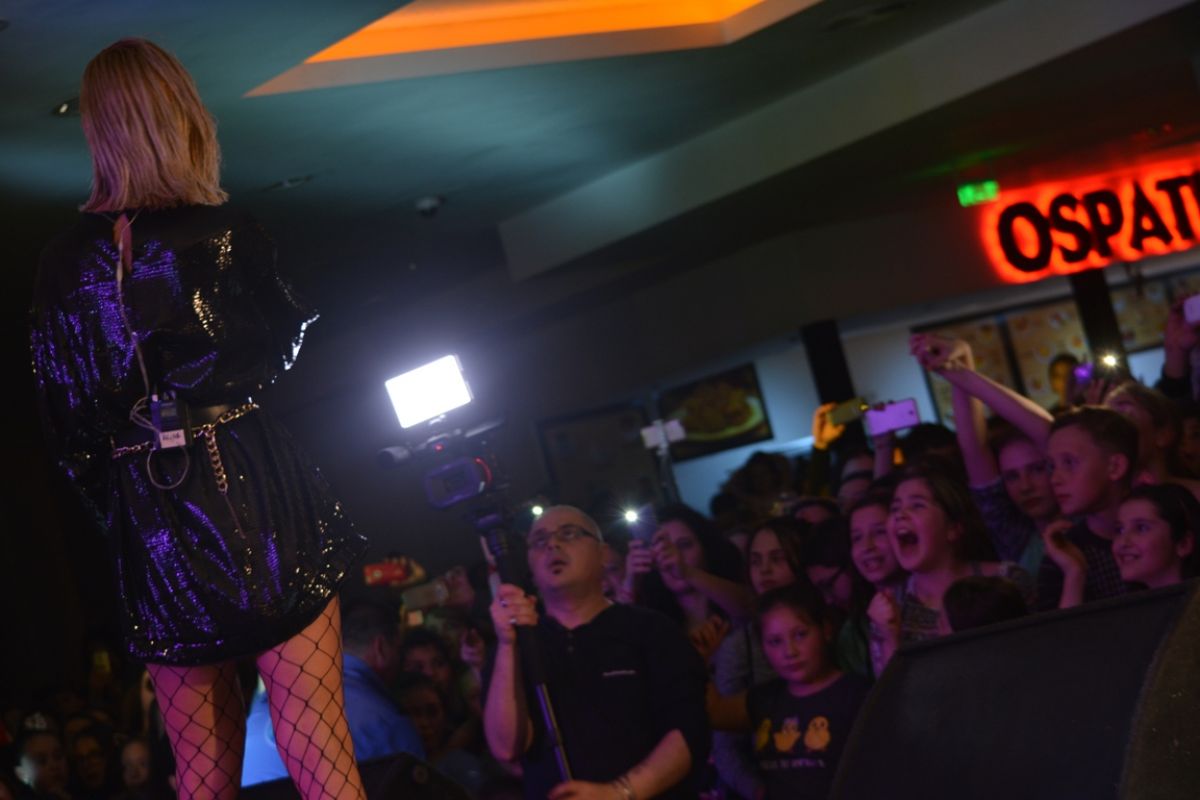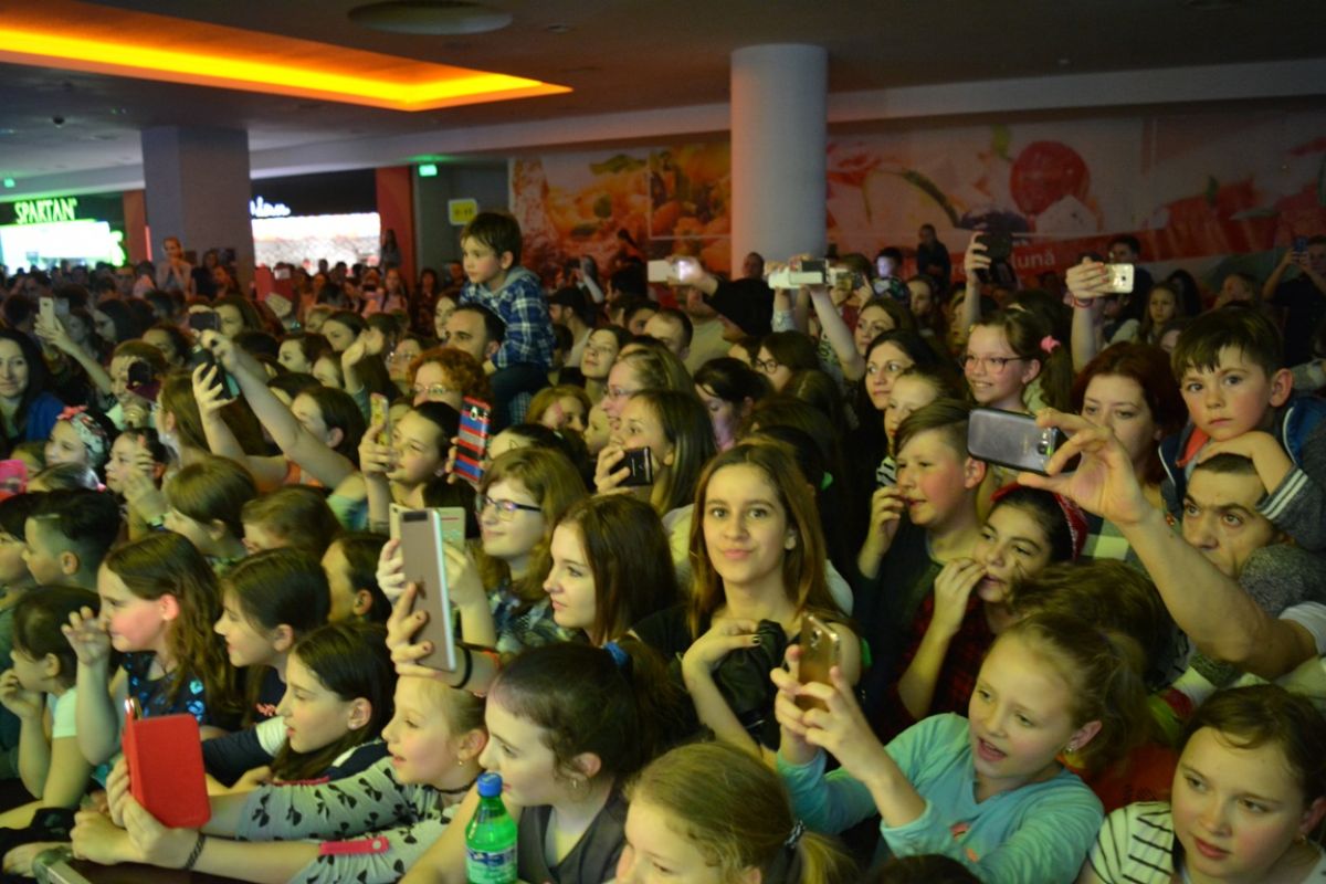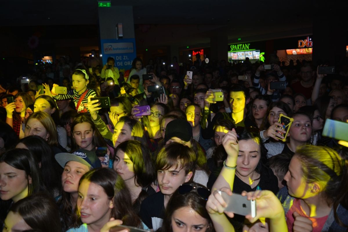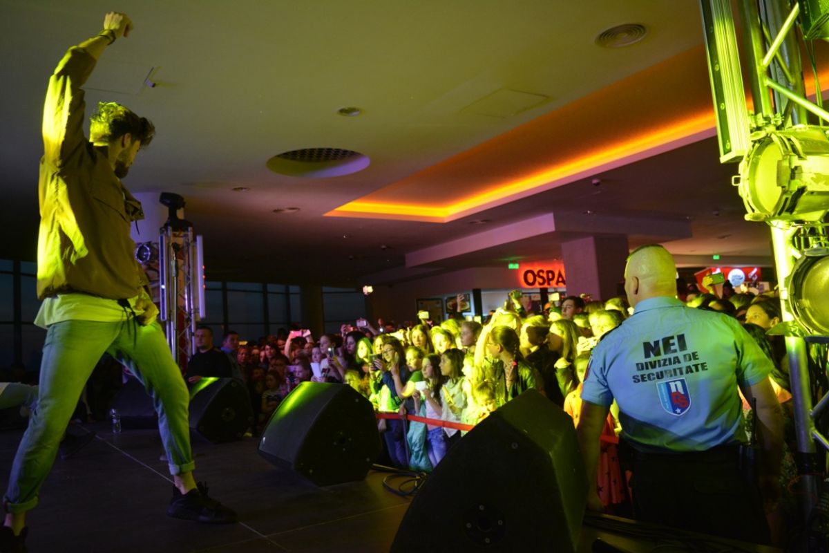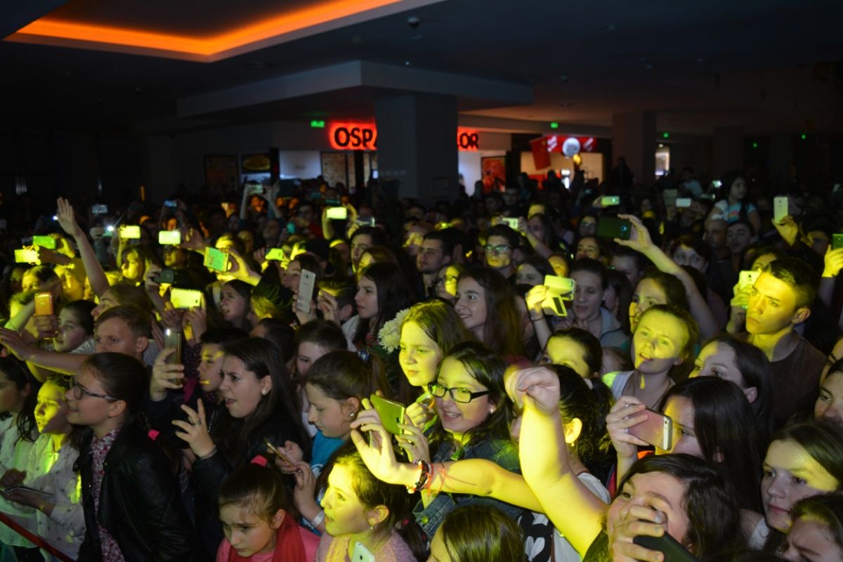 Interpreta născută la Buftea, în 1993 și cunoscută în toată țara după rolul din serialul ”Pariu cu viața” a creat o isterie în cel mai pur sens al cuvântului atunci când urcat pe scenă. Sute de oameni au umplut etajul IV al complexului comercial, mai ales copiii și adolescenții țipând din adâncul sufletului.
