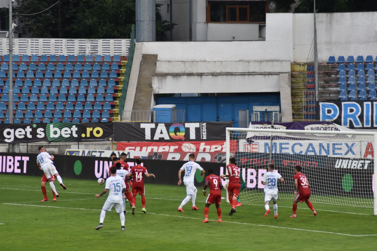 Florescu a executat o lovitură liberă, până la Chindriș, care a căzut în careu după ce a fost prins între Cosic și Bancu.