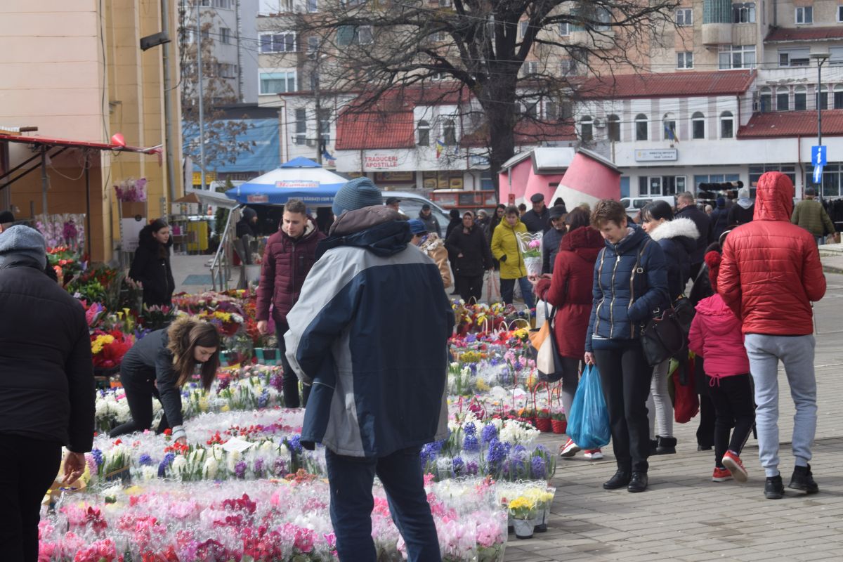 Încă de la primele ore ale dimineții, Piața Centrală a municipiului era plină de copii, tineri și bătrâni care au ieșit să cumpere flori pentru ziua în care femeia este în centrul atenției. Și au avut de unde alege întrucât erau o mulțime de flori care mai de care mai frumoase și mai colorate.